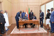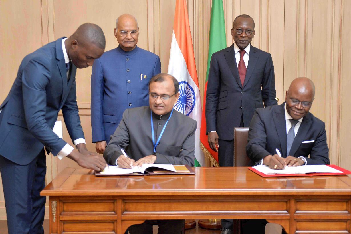 | Caption: | The President of India, Shri Ram Nath Kovind and the President of the Republic of Benin, H.E. Mr. Patrice Talon witnessing the signing of bilateral agreements between India and Benin, at the Presidential Palace of the Marina, in Cotonou, Benin on July 29, 2019. |