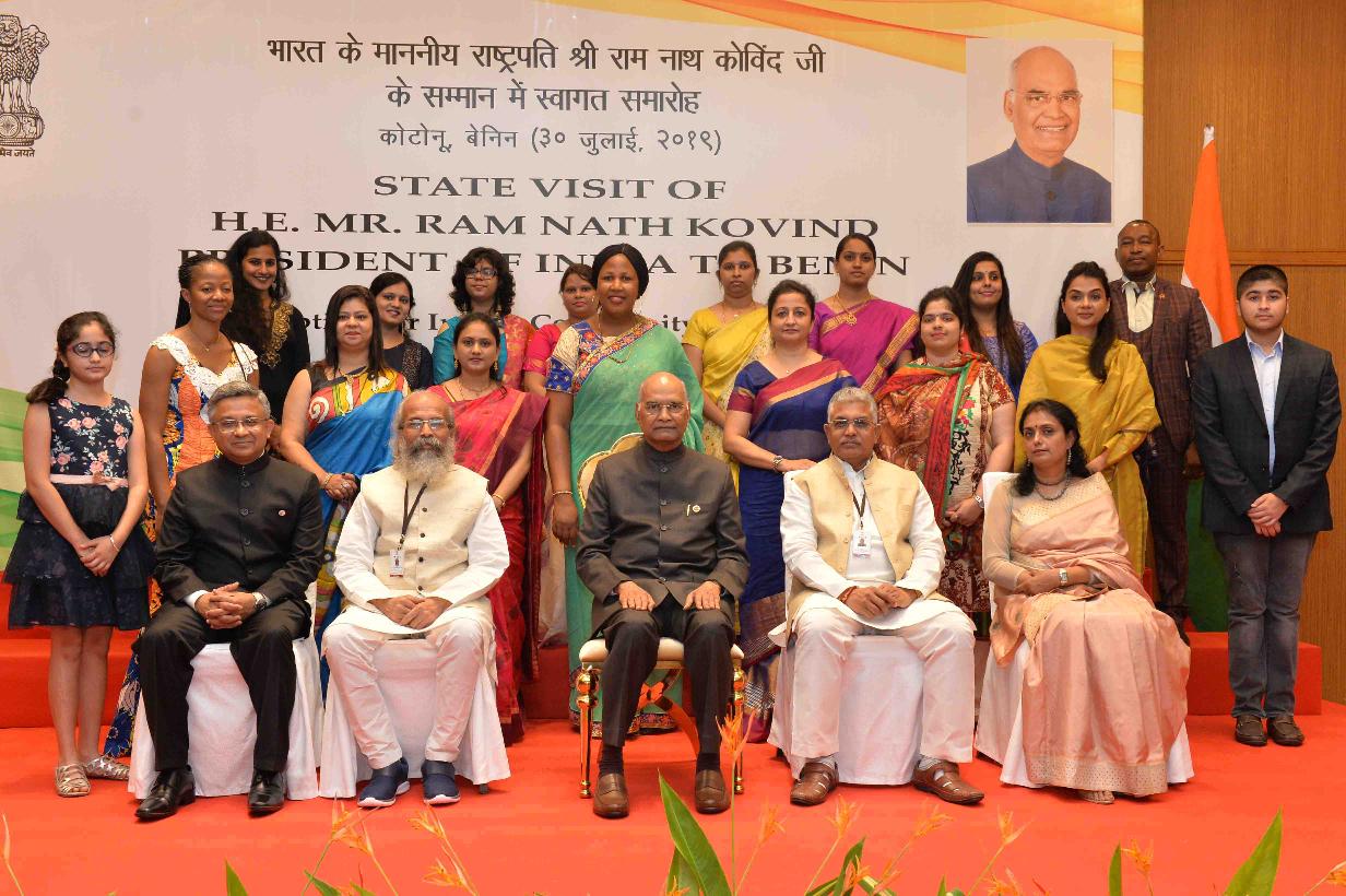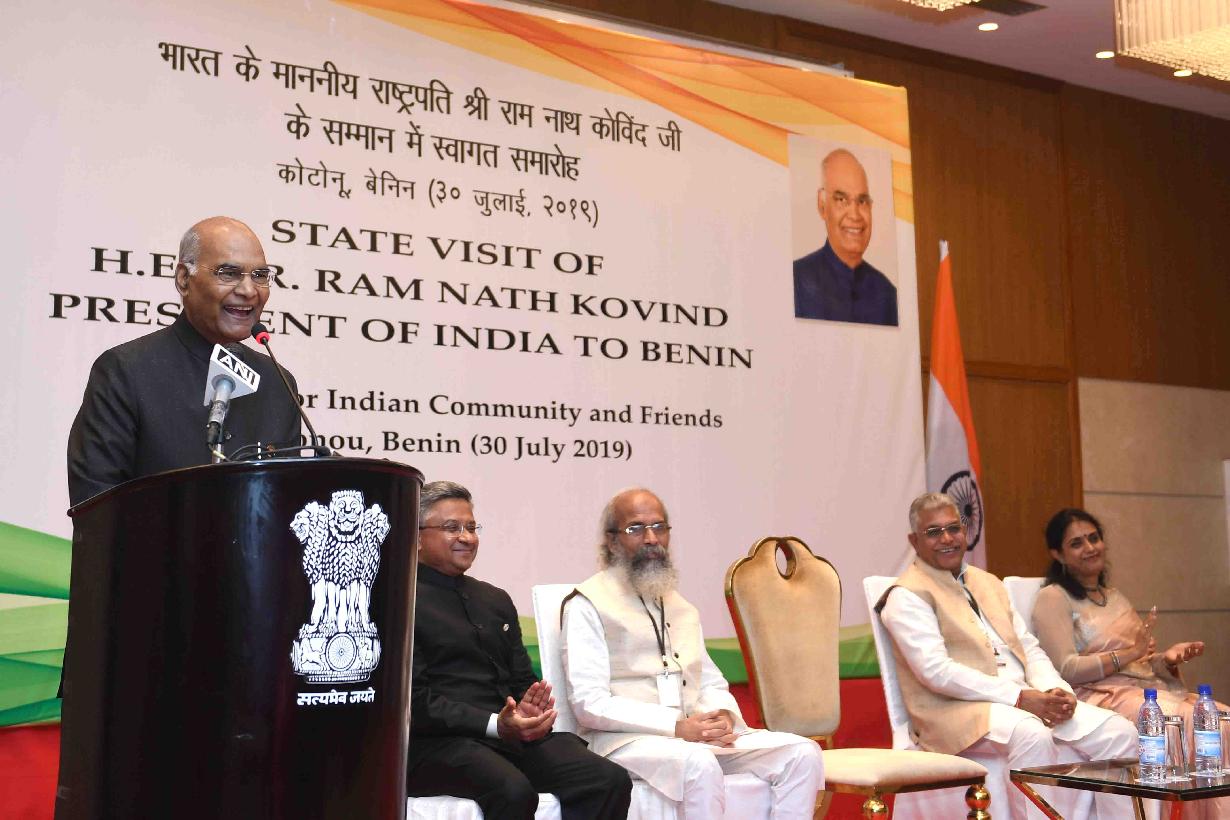 | Caption: | The President of India, Shri Ram Nath Kovind addressing the Indian Community at a Reception, in Cotonou, Benin on July 30, 2019. |