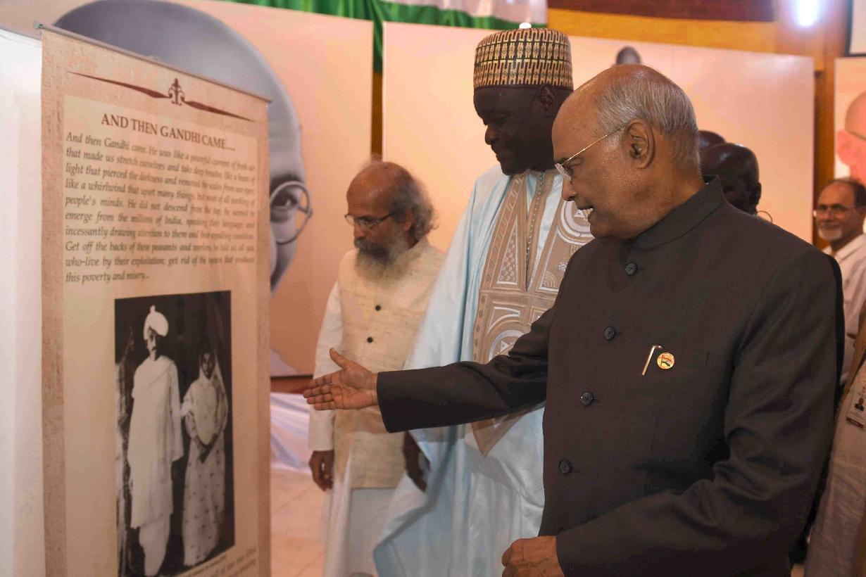 | Caption: | The President of India, Shri Ram Nath Kovind inaugurating the Exhibition on Mahatma Gandhi and Khadi, at Ebunjan Theater, in Banjul, The Gambia on August 01, 2019. |