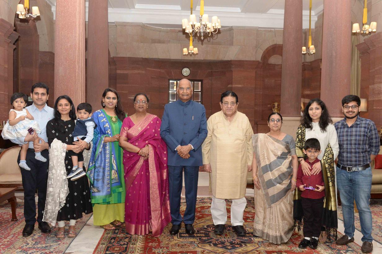 | Caption: | Shri Ajitbhai N. Patel, Executive President, Akhil Bharatiya Koli Samaj, New Delhi along with his family meeting with the President of India, Shri Ram Nath Kovind, at Rashtrapati Bhavan on July 08, 2019. |