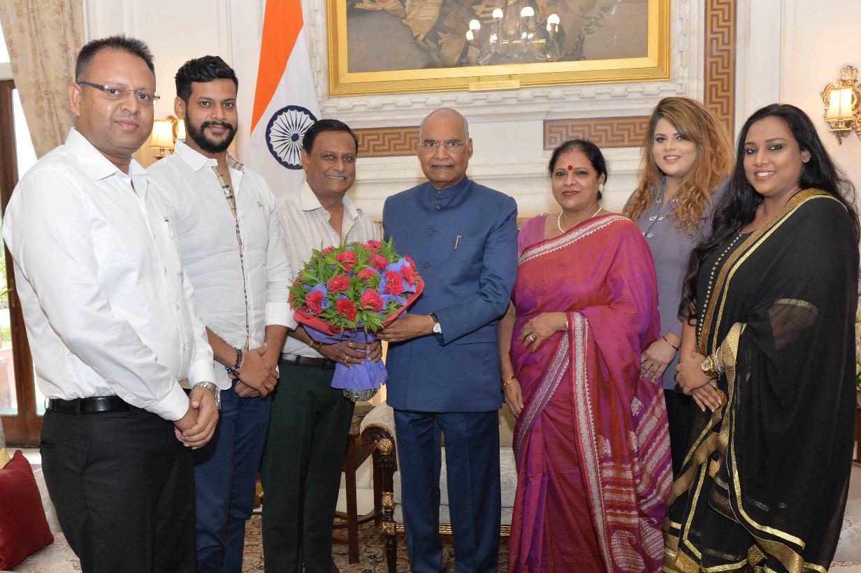 | Caption: | Shri Naresh Bharti, s/o late Shri Kalka Dass (ex-MP) along with his family meeting with the President of India, Shri Ram Nath Kovind, at Rashtrapati Bhavan on July 08, 2019. |