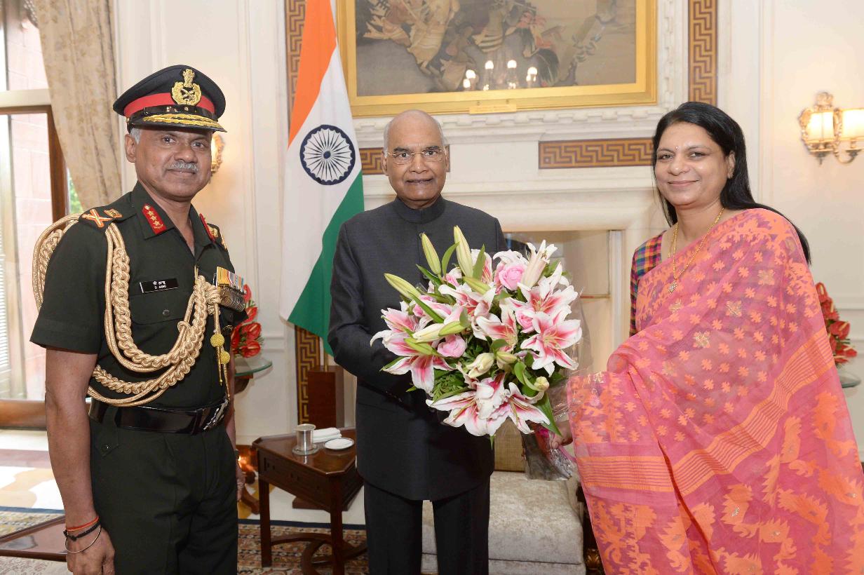 | Caption: | Lt. Gen. Devraj Anbu, ADC, Vice Chief of Army Staff along with his wife Smt. Gowri Anbu meeting with the President of India, Shri Ram Nath Kovind, at Rashtrapati Bhavan on August 14, 2019. |