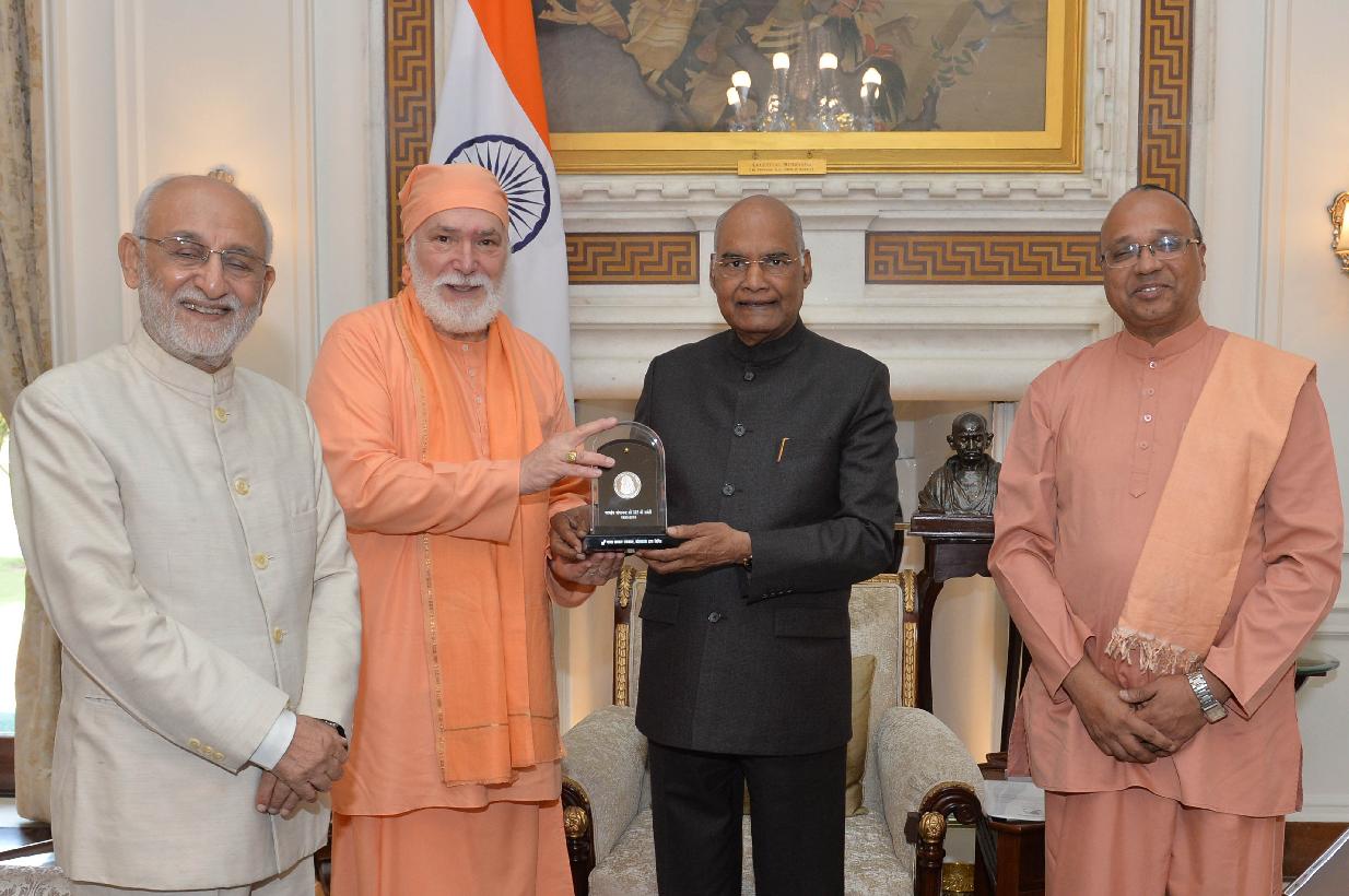 | Caption: | Swami Vishwananda Giri with others from Yagoda Satsang Society of India meeting with the President of India, Shri Ram Nath Kovind, at Rashtrapati Bhavan on November 06, 2019. |