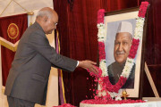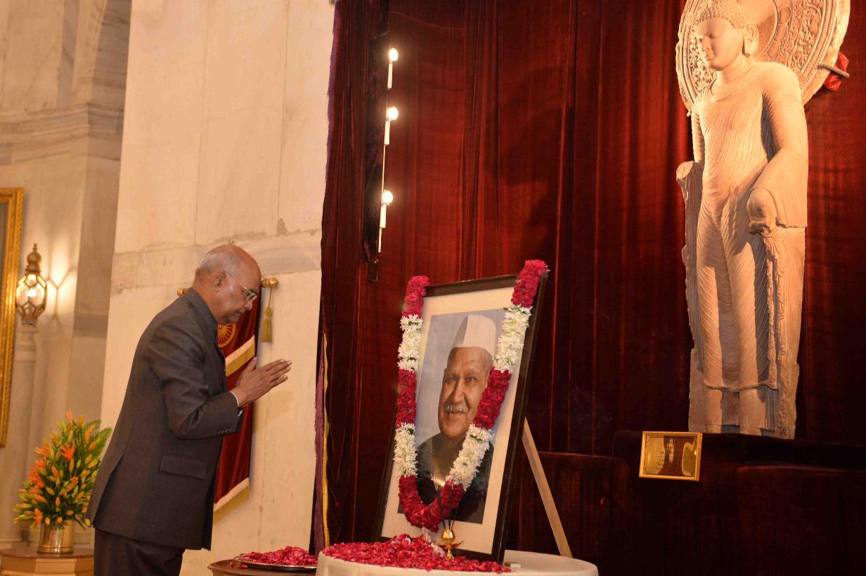 | Caption: | The President of India, Shri Ram Nath Kovind paying tributes to Dr. Shankar Dayal Sharma, former President of India, on his birth anniversary, at Rashtrapati Bhavan on August 19, 2019. |