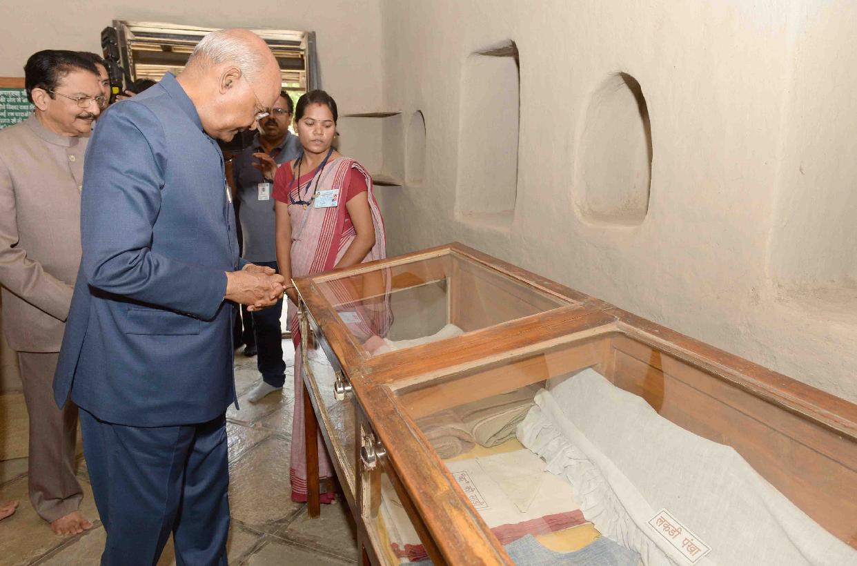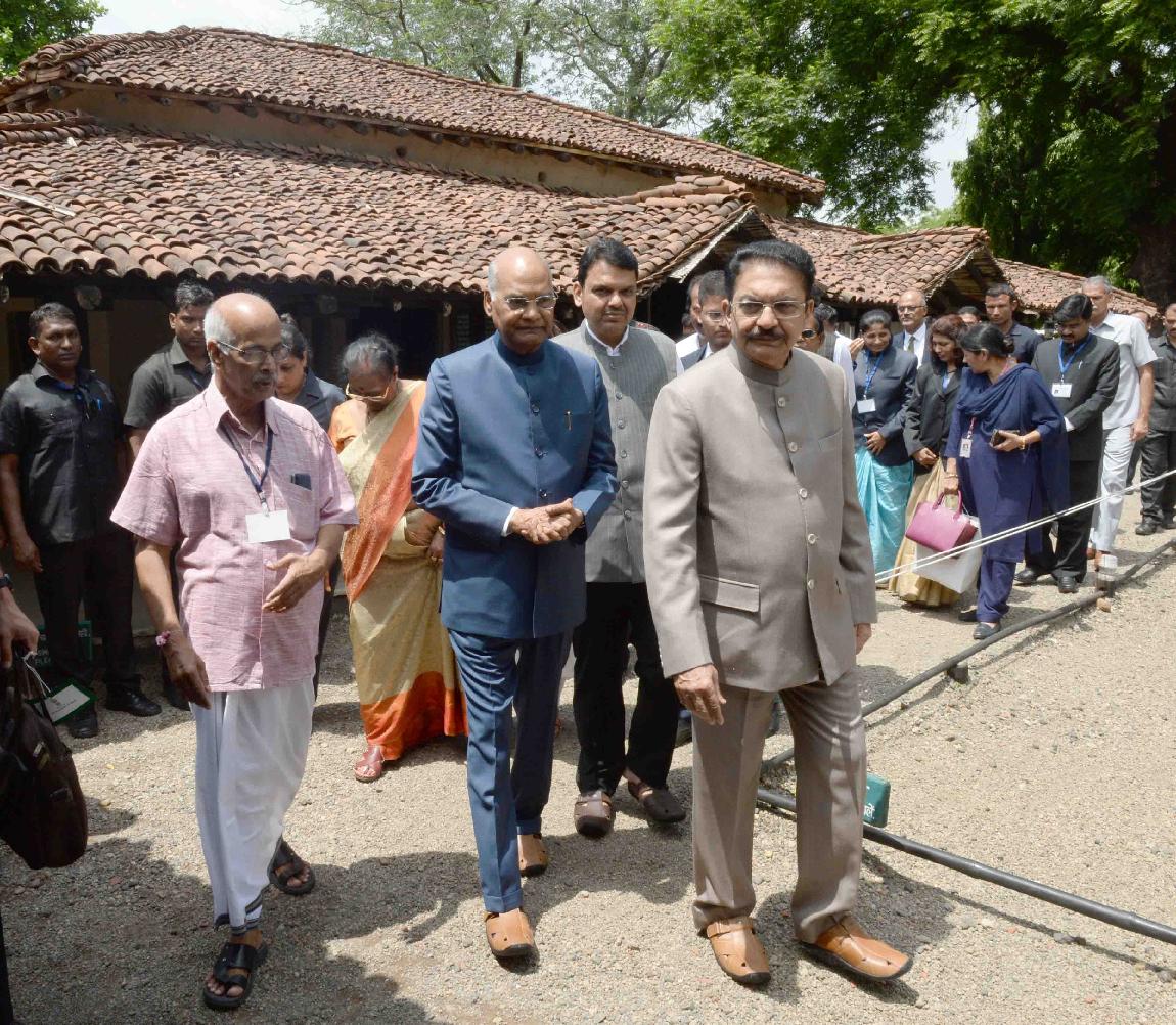 | Caption: | The President of India, Shri Ram Nath Kovind visiting the Bapu Kuti (Gandhi Sevagram Ashram), at Wardha, in Maharashtra on August 17, 2019. |