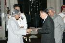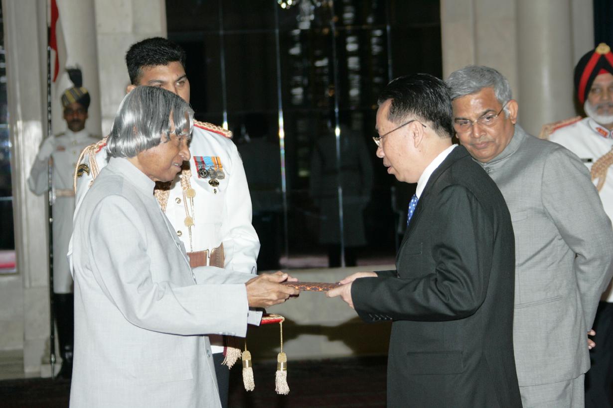 | Caption: | The Ambassador-Designate of the Kingdom of Combodia to India, HE Mr Choeung Buntheng presenting his credentials to the President of India, Dr A P J Abdul Kalam at the Ashok Hall of Rashtrapati Bhavan in New Delhi on Aug 08, 2005 |
