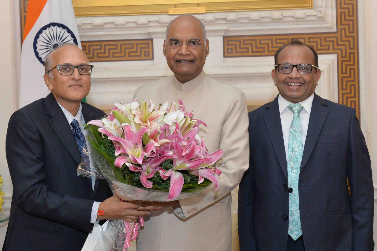 | Caption: | Shri Justice S. Ravindra Bhat, Chief Justice of Rajasthan High Court along with Shri Justice Sangeet Raj Lodha, Chairman, Building Committee, Rajasthan High Court meeting with the President of India, Shri Ram Nath Kovind, at Rashtrapati Bhavan on August 21, 2019. |