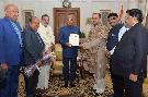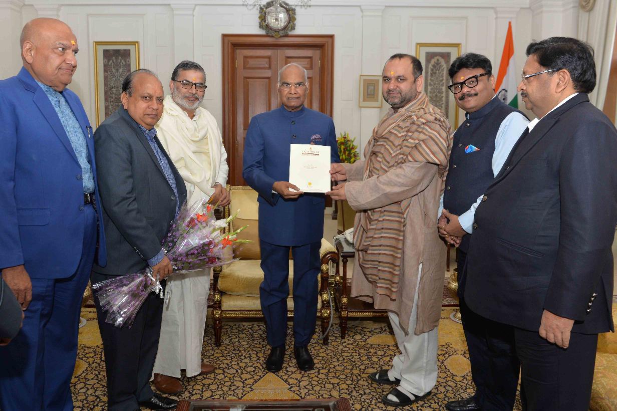 | Caption: | Shri Mahesh Giri, MP (LS) from East Delhi & National Secretary, BJP with others meeting with the President of India, Shri Ram Nath Kovind, at Rashtrapati Bhavan on February 15, 2018. |