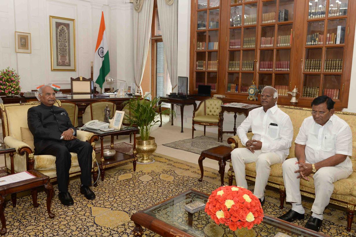| Caption: | The Deputy Chief Minister and Minister of Education of Telangana State, Shri Kediyam Srihari meeting with the President of India, Shri Ram Nath Kovind, at Rashtrapati Bhavan on February 16, 2018. |