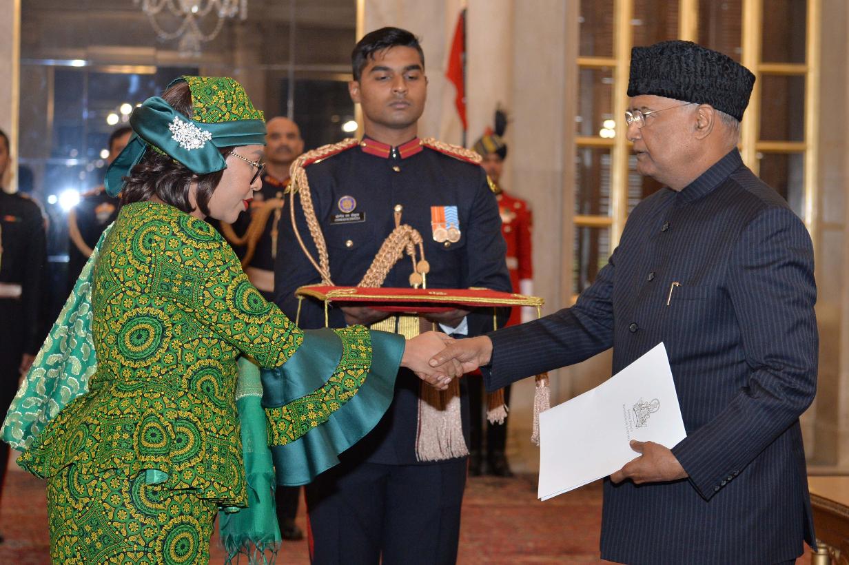 | Caption: | The High Commissioner-designate of the Kingdom of Lesotho, H.E. Mrs. Lineo Irene Molise-Mabusela presenting her credentials to the President of India, Shri Ram Nath Kovind, at Rashtrapati Bhavan on January 21, 2020. |