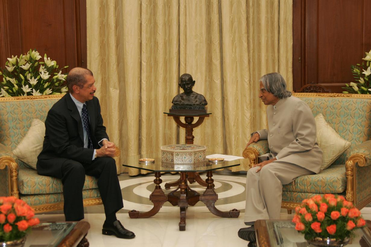 | Caption: | The President of the Republic of Seychelles, HE Mr James Alix Michel calling on the President of India, Dr A P J Abdul Kalam at the North Drawing Room of Rashtrapati Bhavan in New Delhi on Aug 01, 2005 |