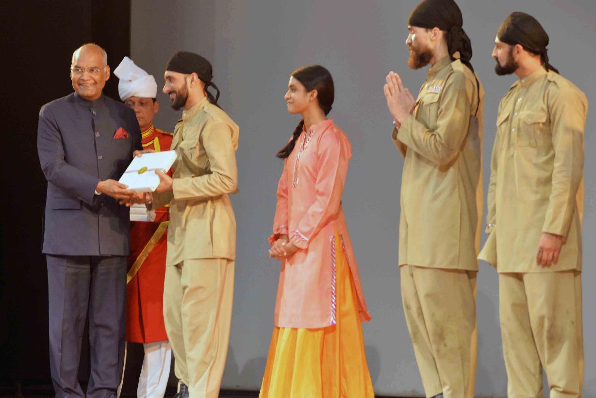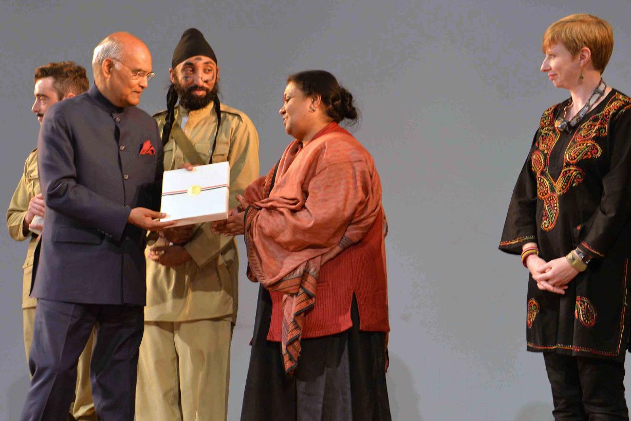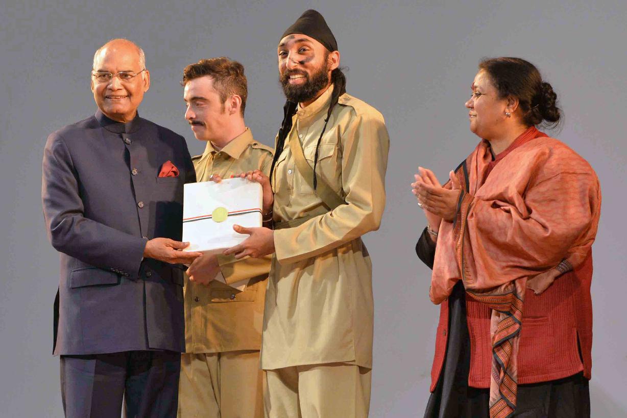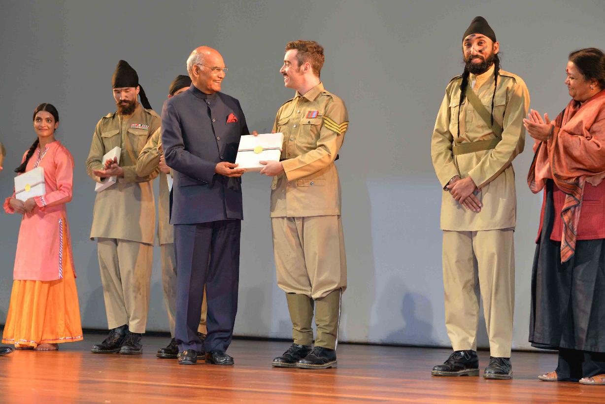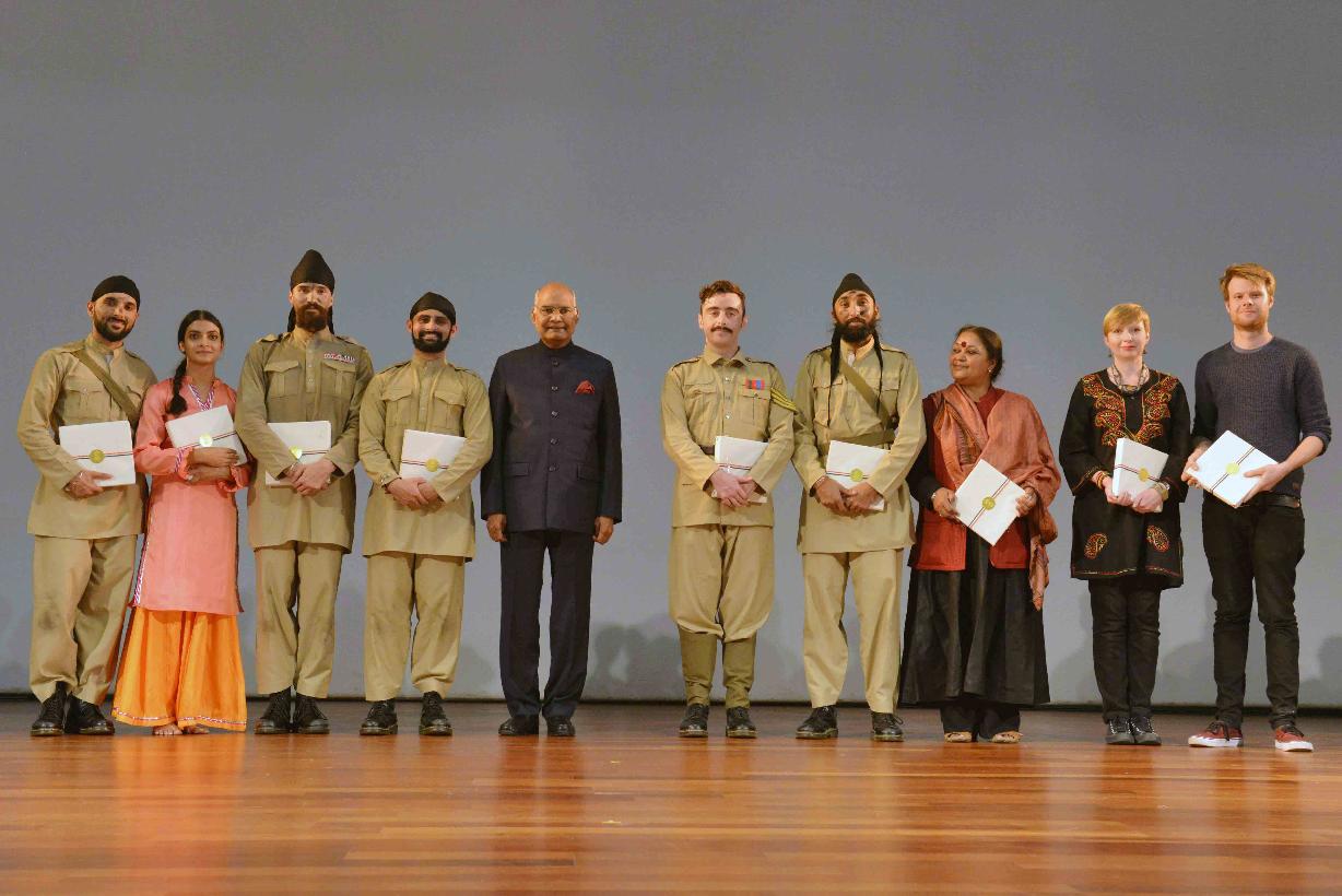 | Caption: | The President of India, Shri Ram Nath Kovind felicitating the artistes after witnessing the play 'Usne Kaha Tha' (The Torth), at Rashtrapati Bhavan Auditorium on February 13, 2018. |