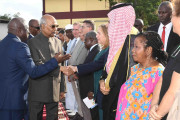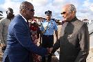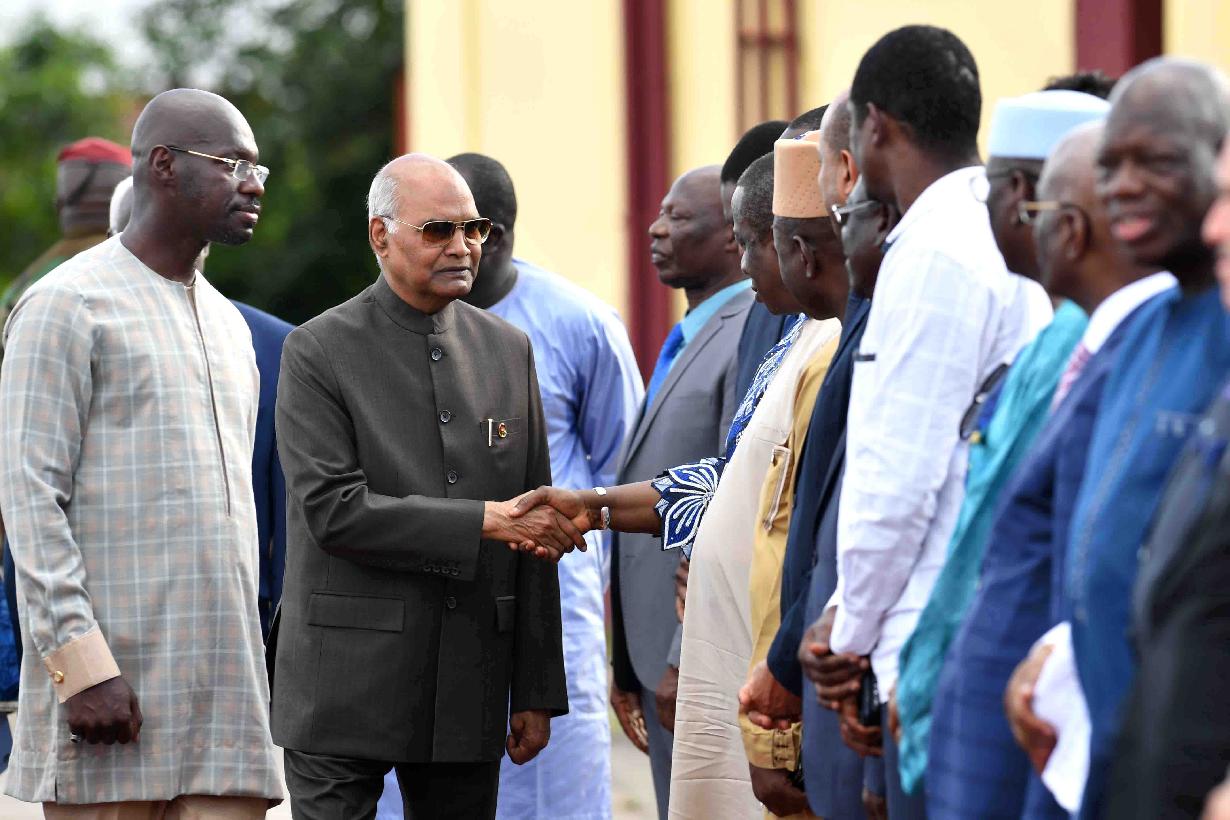 | Caption: | The President of India, Shri Ram Nath Kovind being received by the President of Guinea, H.E. Mr. Alpha Conde on his arrival, at Conakry International Airport, in Conakry, Guinea on August 01, 2019. |