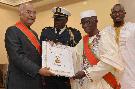 | Caption: | The President of India, Shri Ram Nath Kovind being presented the National Order of Merit (the highest award of Guinea) by the President of Guinea, H.E. Mr. Alpha Conde, at Hotel Sheraton Grand, in Conakry, Guinea on August 02, 2019. |