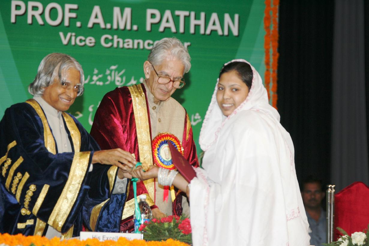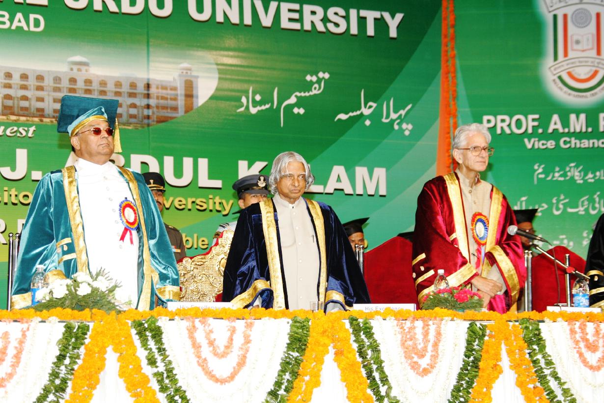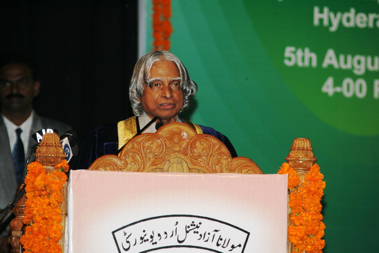 | Caption: | The President of India, Dr A P J Abdul Kalam addressing the First Convocation of Maulana Azad National Urdu University and presenting the Degree to the Students at Hyderabad in Andhra Pradesh on Aug 05, 2005 |