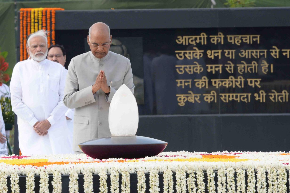 | Caption: | The President of India, Shri Ram Nath Kovind paying homage to Shri Atal Bihari Vajpayee, former Prime Minister of India, on his first death anniversary, at Sadaiv Atal Rajghat, in New Delhi on August 16, 2019. |