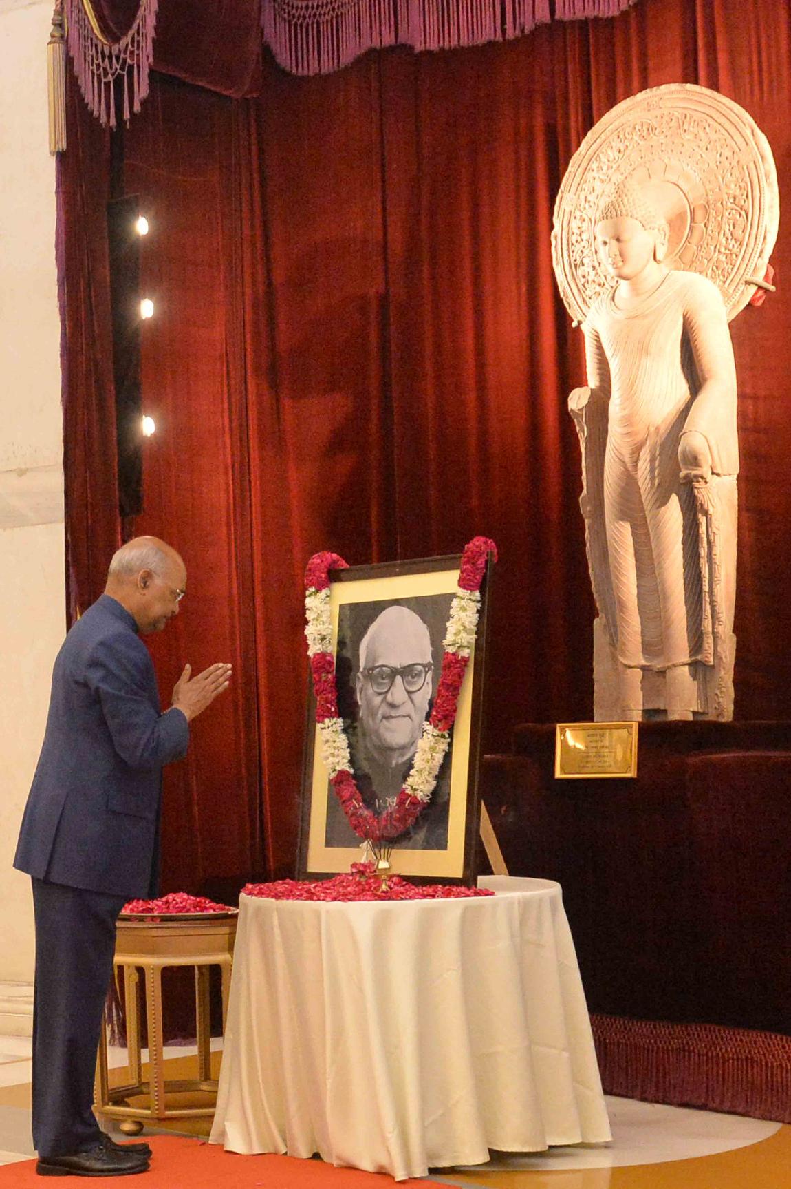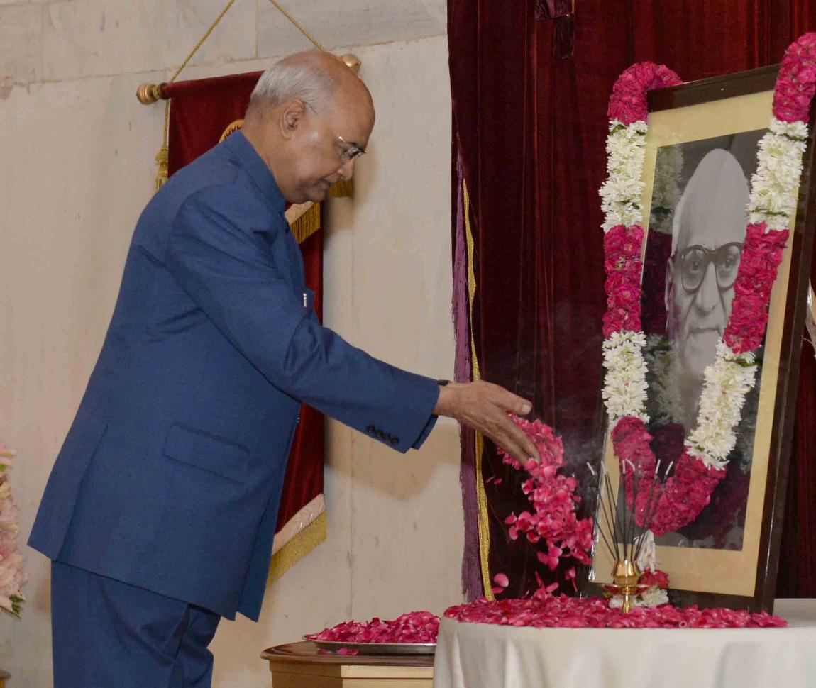 | Caption: | The President of India, Shri Ram Nath Kovind paying floral tributes at the portrait of the former President of India, Shri V.V. Giri on the occasion of his Birth Anniversary, at Rashtrapati Bhavan on August 10, 2019. |