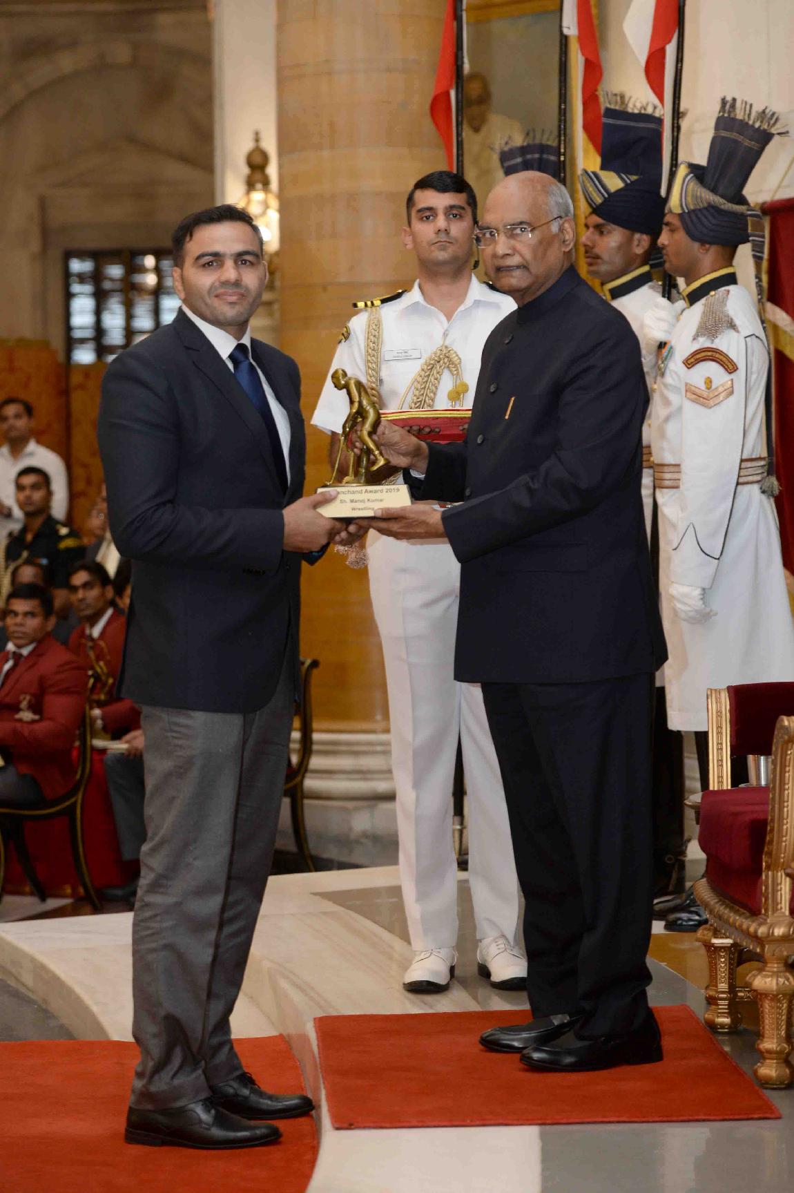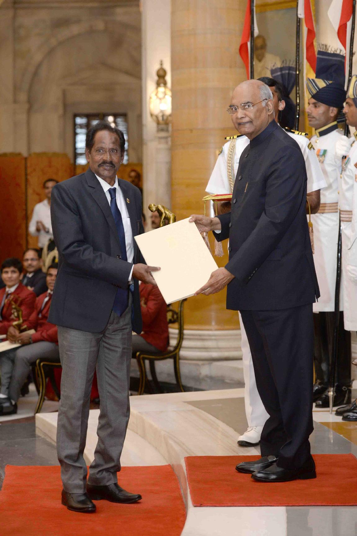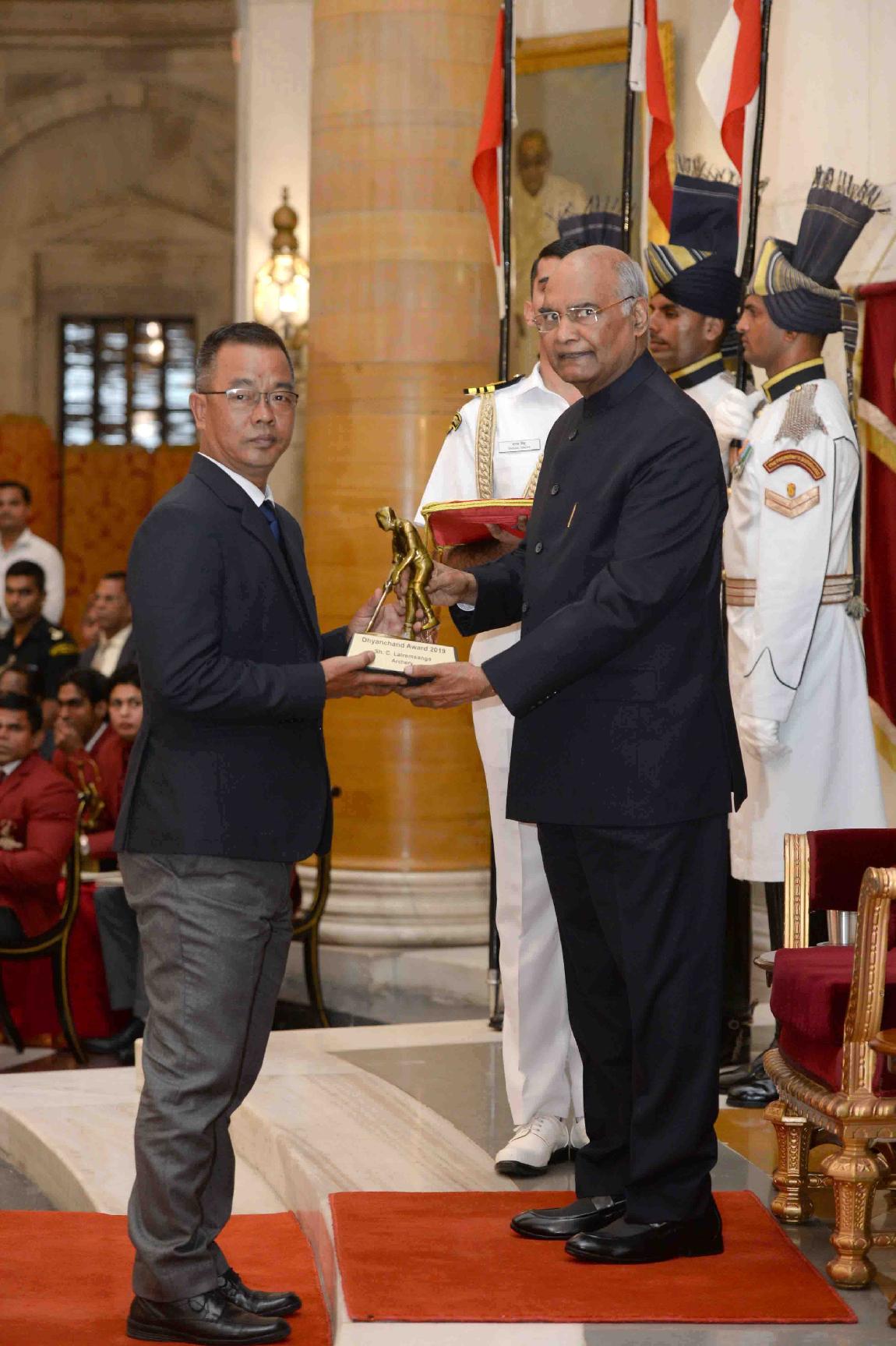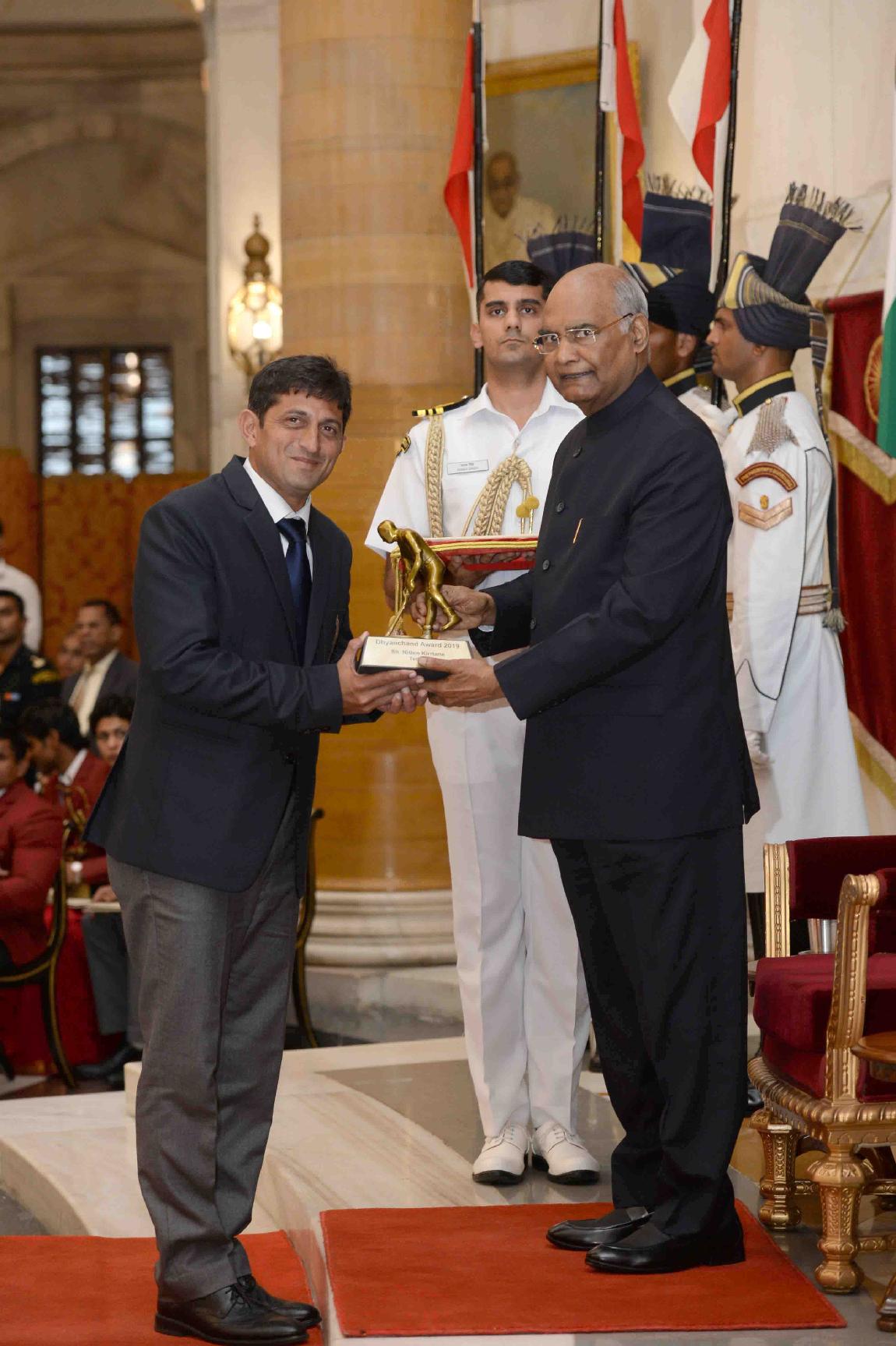| Caption: | The President of India, Shri Ram Nath Kovind presenting the Dhyan Chand Awards 2019 to Shri Manuel Fredricks, Shri Arup Basak, Shri Manoj Kumar, Shri Nitten Kirrtane and Shri C. Lalremsanga, at the National Sports & Adventure Awards function, at Rashtrapati Bhavan on August 29, 2019. |