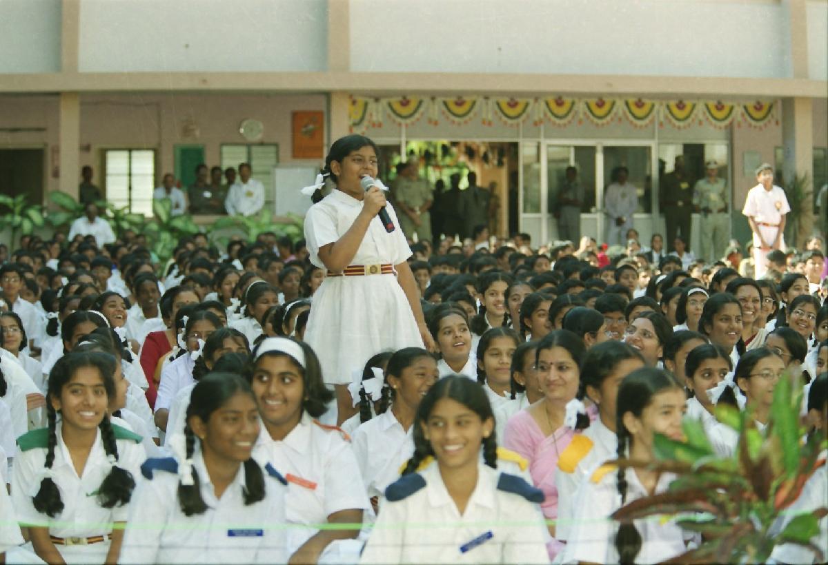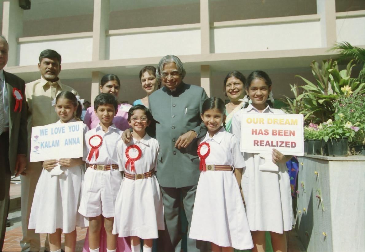| Caption: | The President of India, Dr A P J Abdul Kalam meeting with the Students of Bhartiya Vidya Bhavan at Hyderabad in Andhra Pradesh on Nov 26, 2002 |