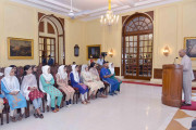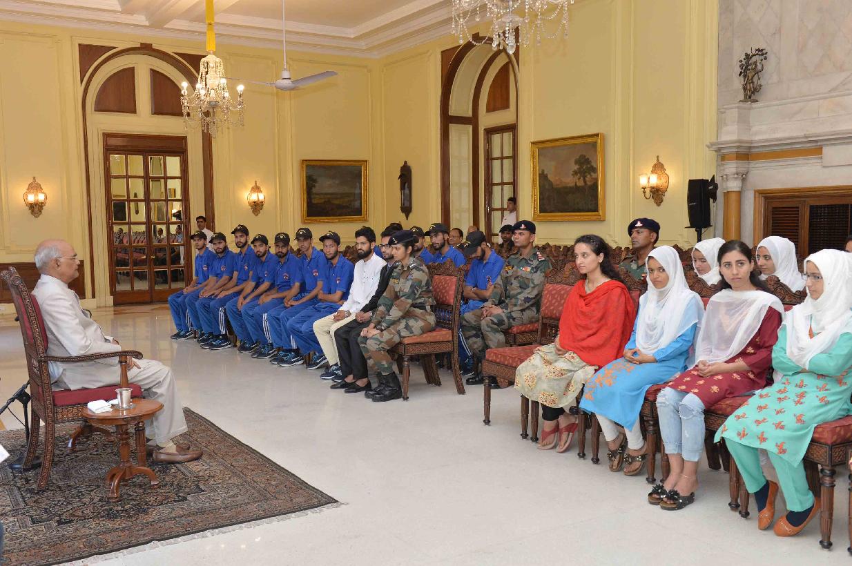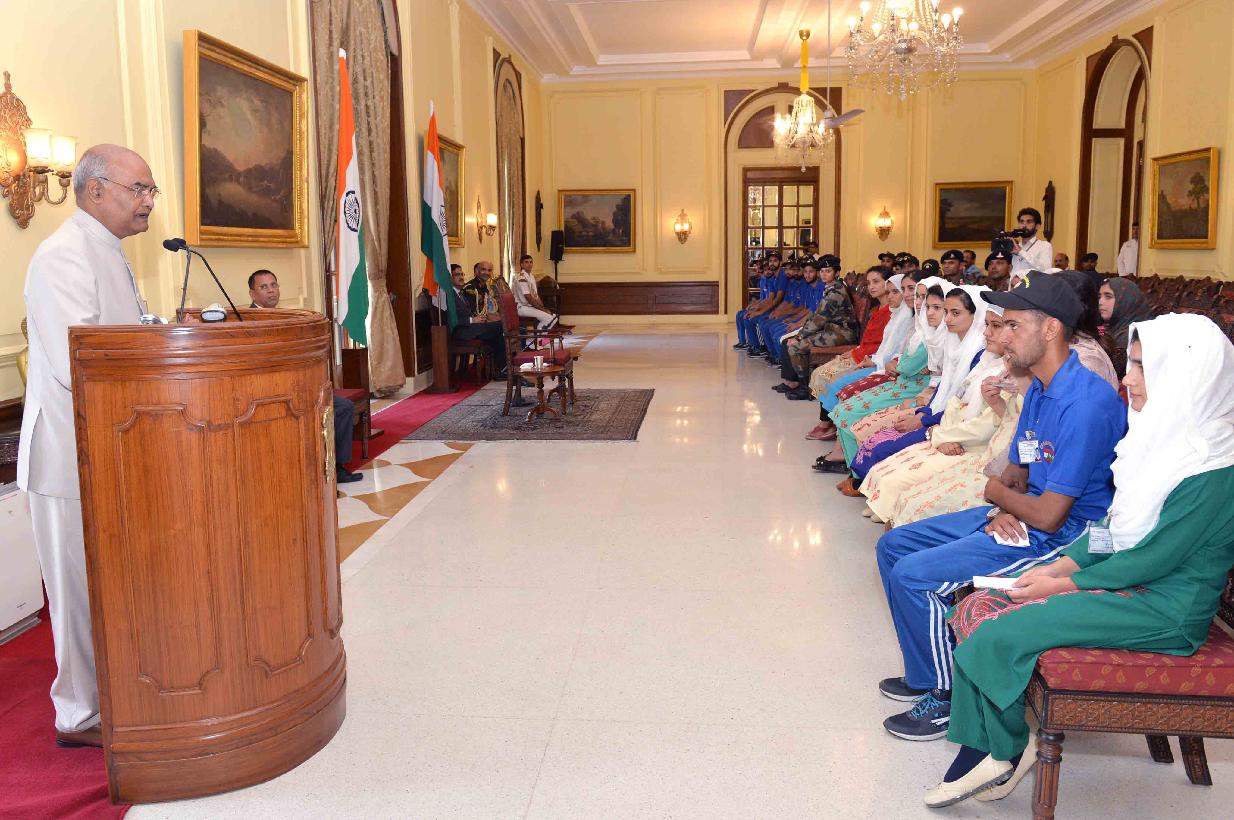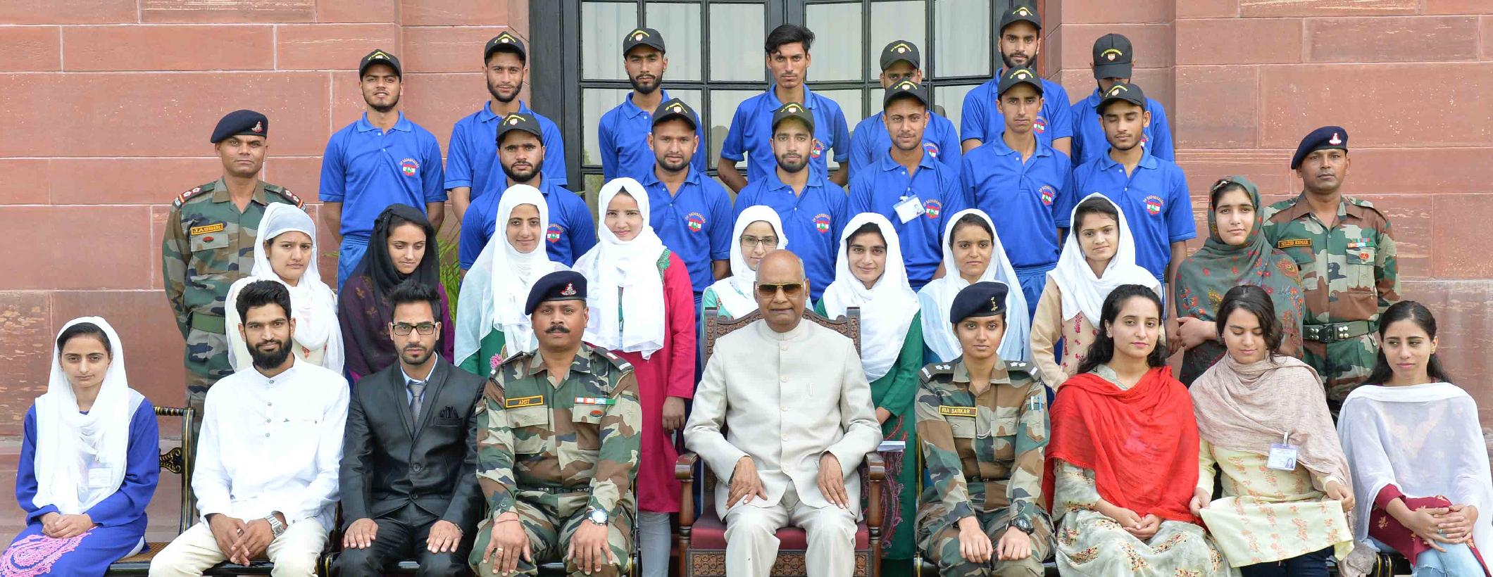 | Caption: | Students from Gurez, Tangdhar and Kupwara districts of Jammu and Kashmir attending National Integration tour, organised by Vajr Div of 15 Corps of Northern Command meeting with the President of India, Shri Ram Nath Kovind, at Rashtrapati Bhavan on August 29, 2019. |