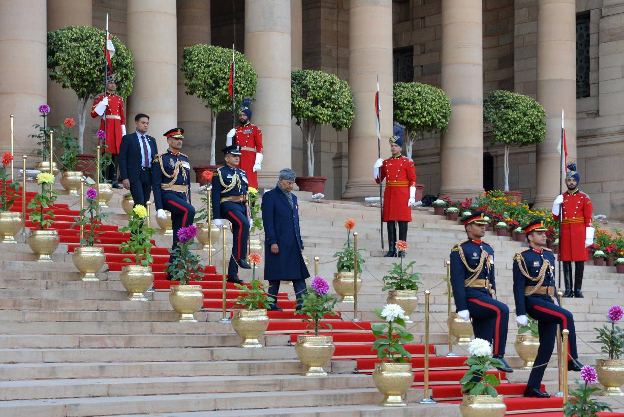 | Caption: | The President of India, Shri Ram Nath Kovind receiving National Salute from President's Body Guard at Forecourt of Rashtrapati Bhavan before leaving for Vijay Chowk to witness the 'Beating Retreat' on January 29, 2020. |