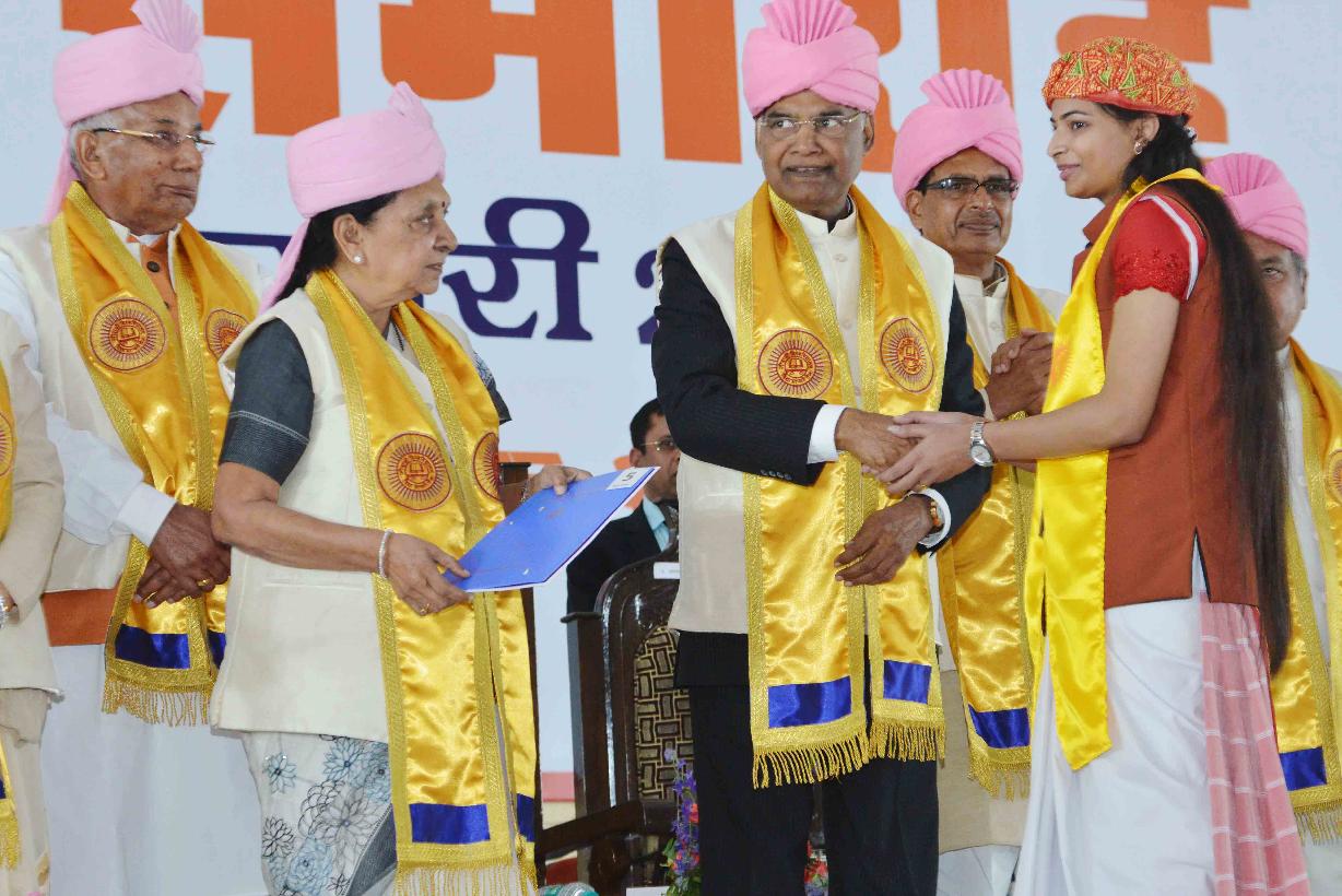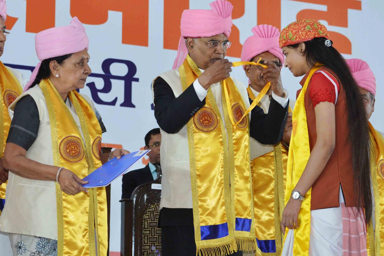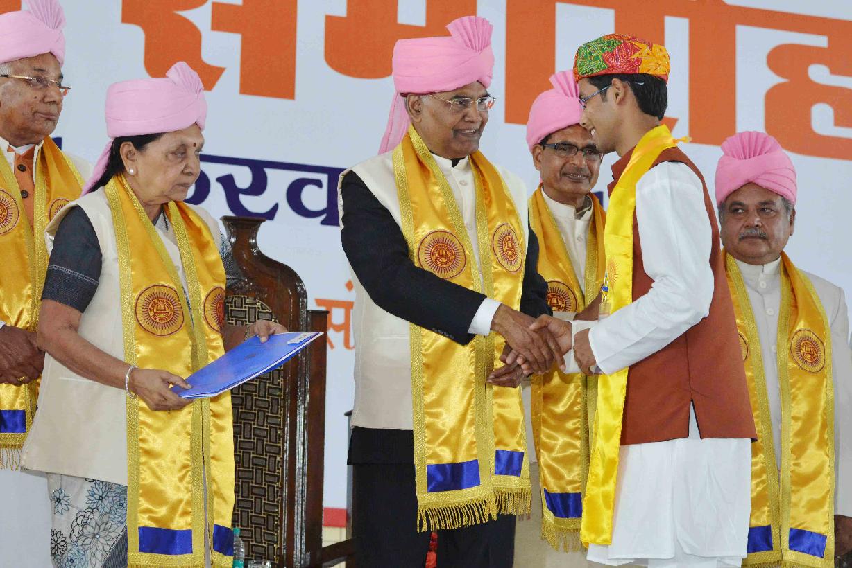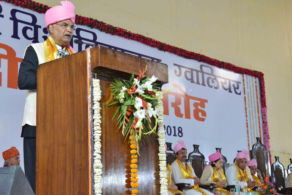 | Caption: | The President of India, Ram Nath Kovind addressing the Convocation of Jiwaji University and presenting Gold Medals to students, at Gwalior, in Madhya Pradesh on February 11, 2018. |