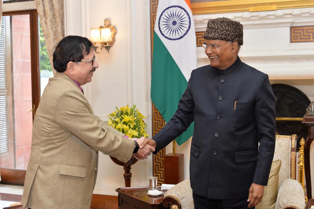 | Caption: | Prof. Dr. Seyed E. Hasnain, Vice Chancellor, Jamia Hamdard (Hamdard University) meeting with the President of India, Shri Ram Nath Kovind, at Rashtrapati Bhavan on January 16, 2020. |