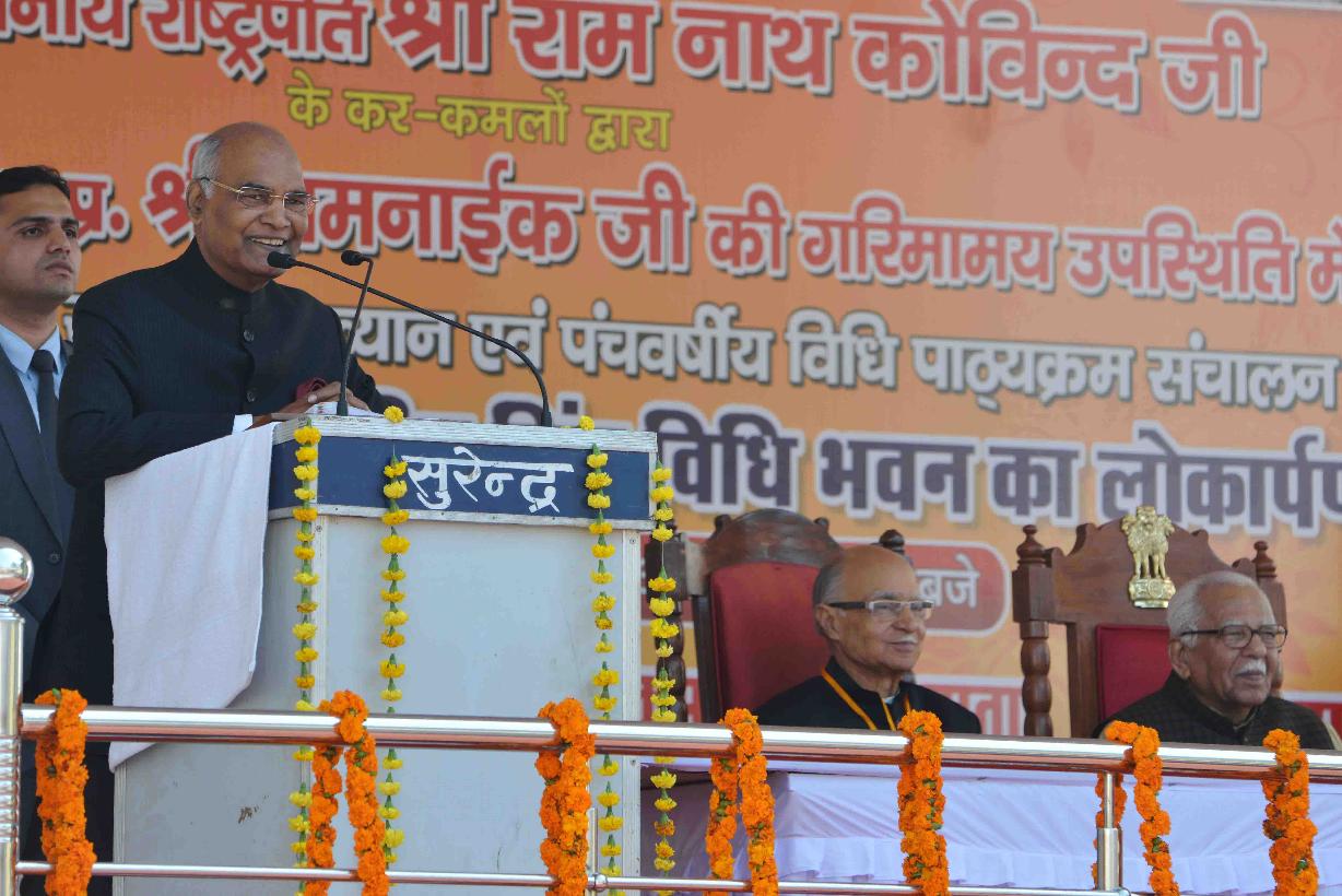 | Caption: | The President of India, Ram Nath Kovind delivering Barrister Narendrajit Singh Memorial lecture, at Vijkramajit Singh Sanatan Dharma College, Kanpur, in Uttar Pradesh on February 14, 2018. |