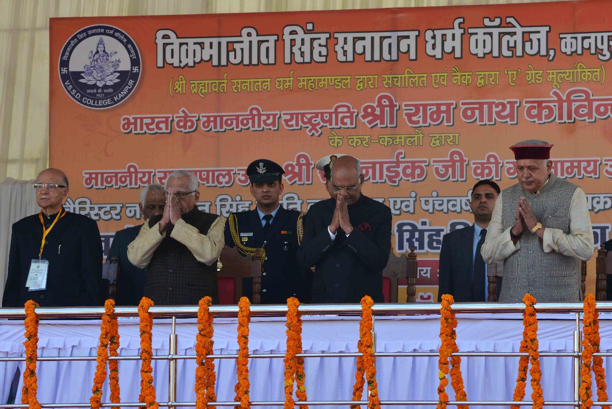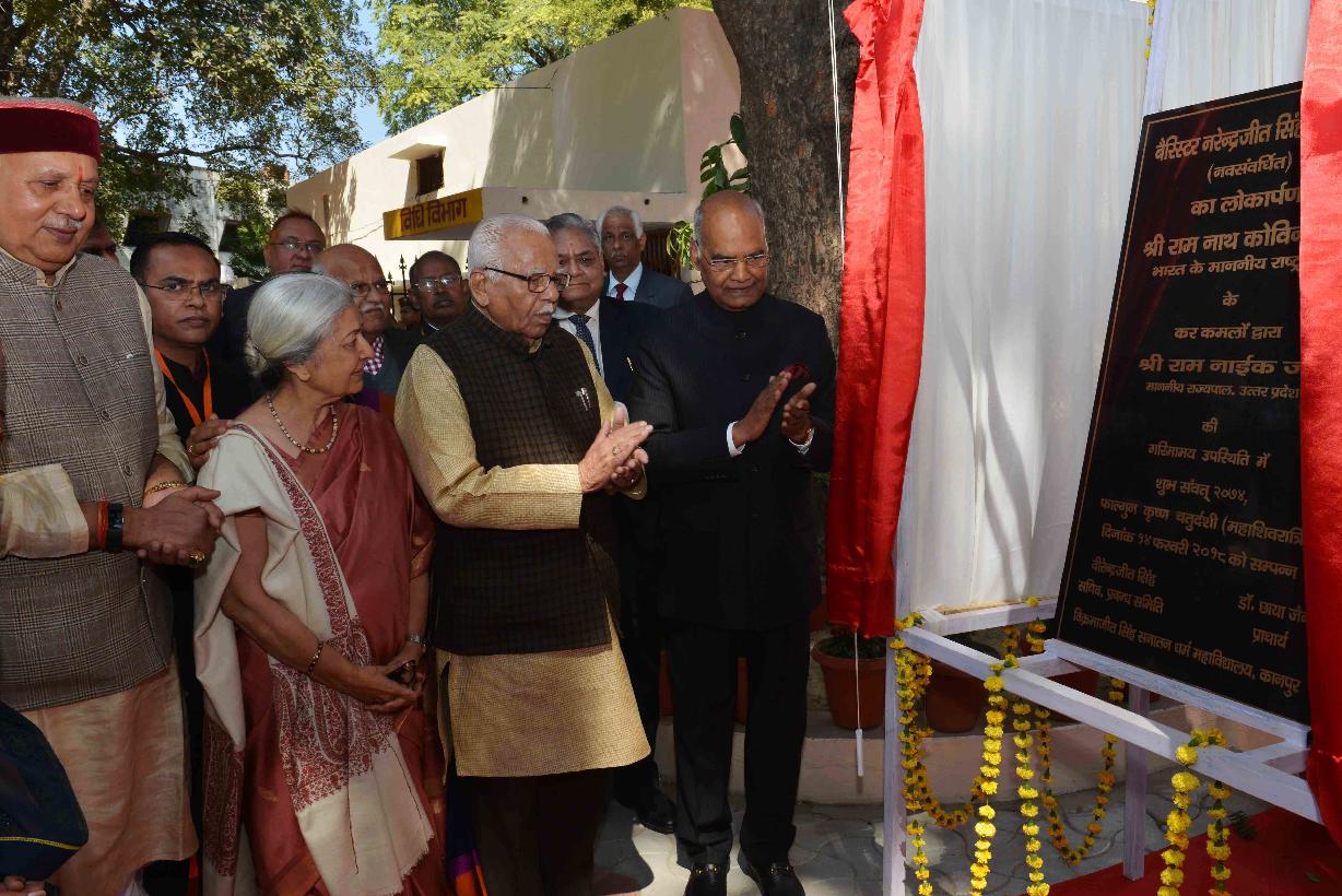 | Caption: | The President of India, Ram Nath Kovind inaugurating the First & Second Floors of Barrister Narendrajit Singh Law Bhavan of Vijkramajit Singh Sanatan Dharma College, Kanpur, in Uttar Pradesh on February 14, 2018. |