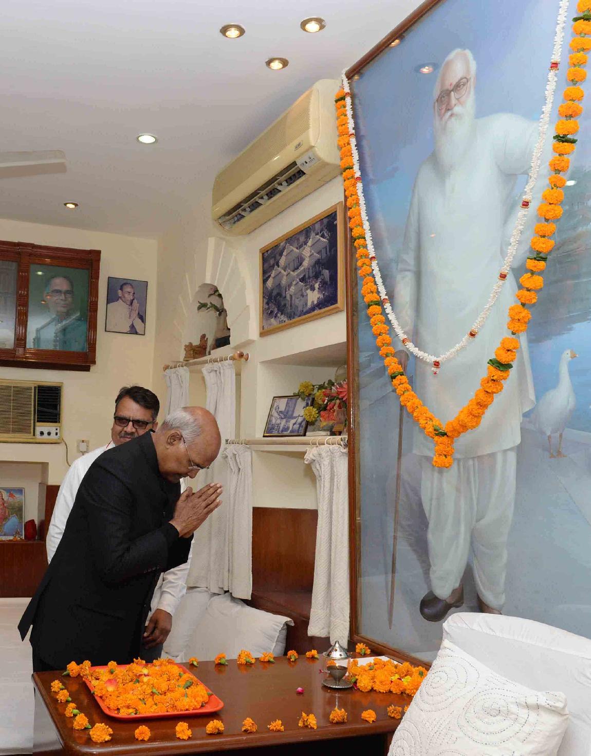 | Caption: | The President of India, Shri Ram Nath Kovind paying floral tributes to Nanaji Deshmukh, at Siyaram Kuteer, Chitrakoot, in Madhya Pradesh on January 08, 2018. |