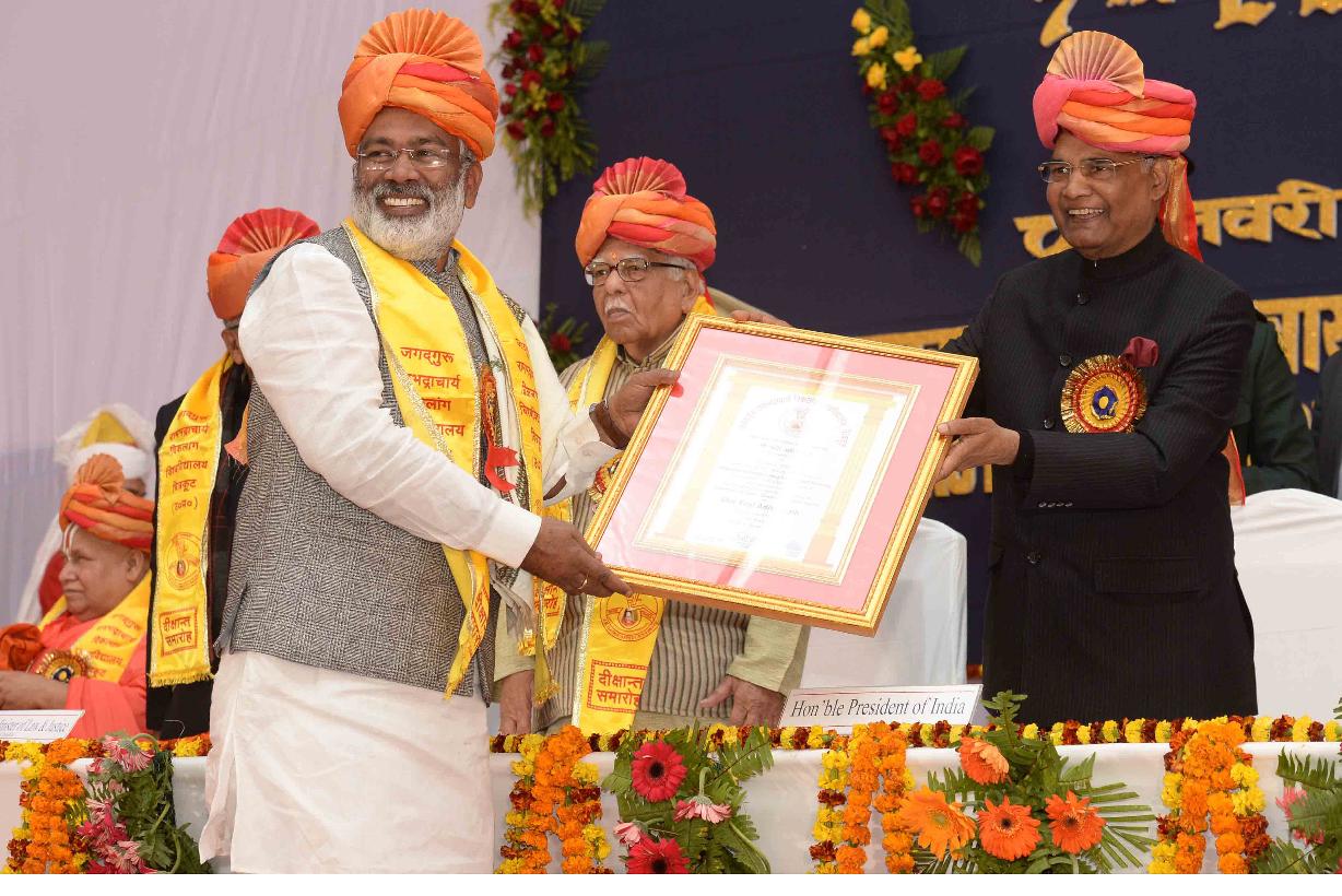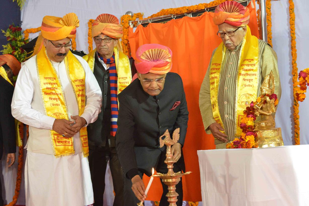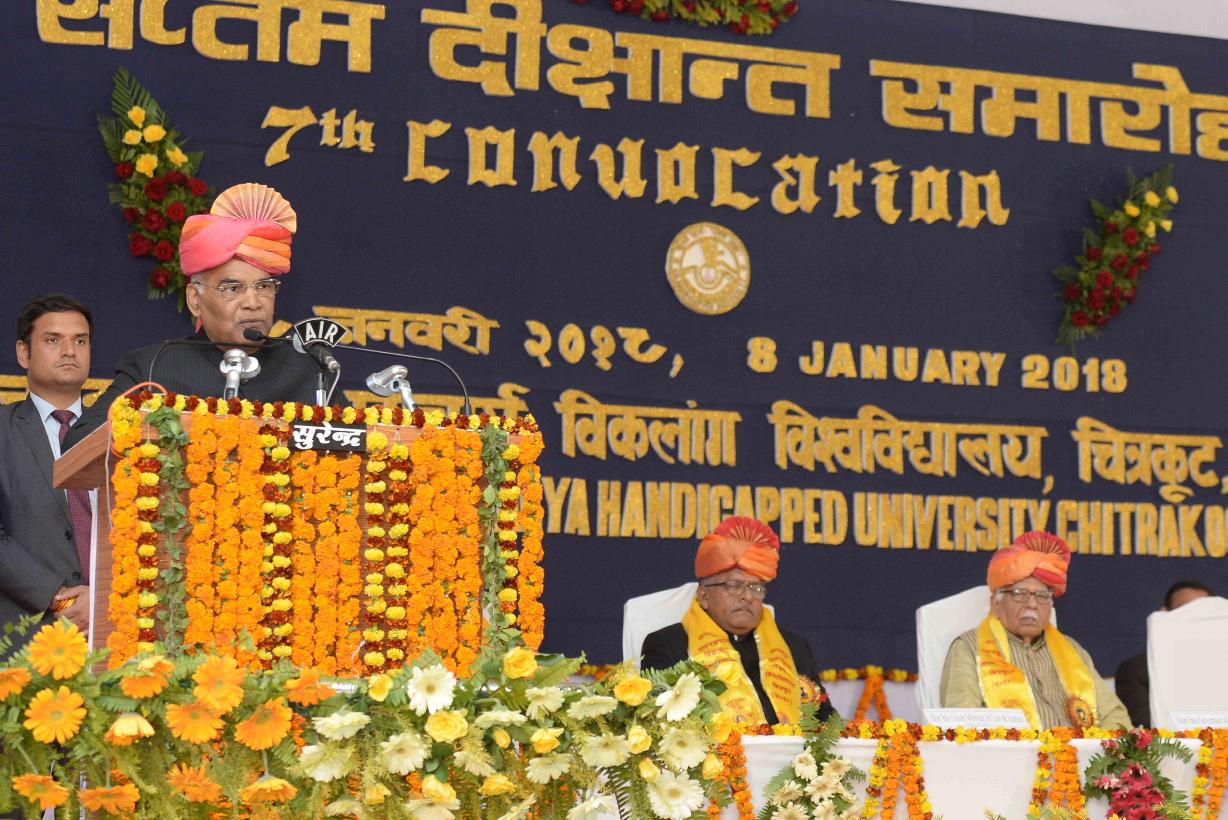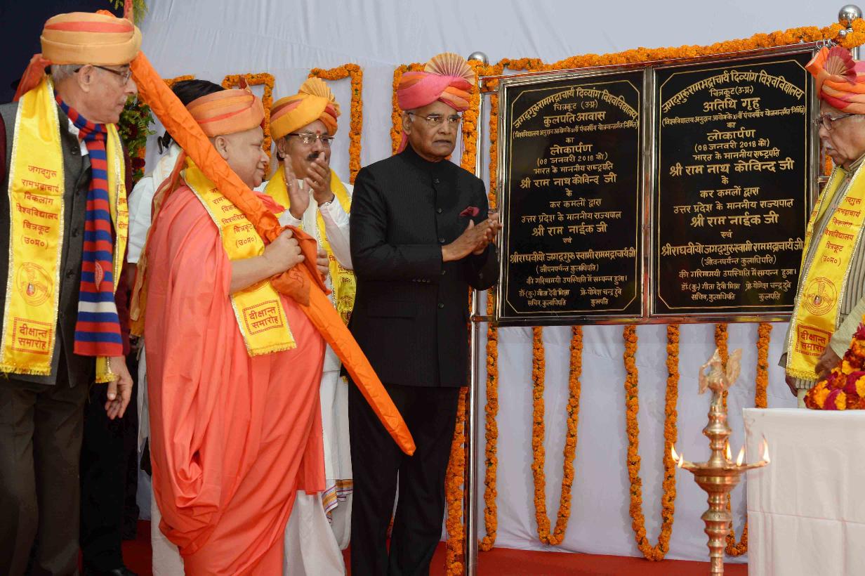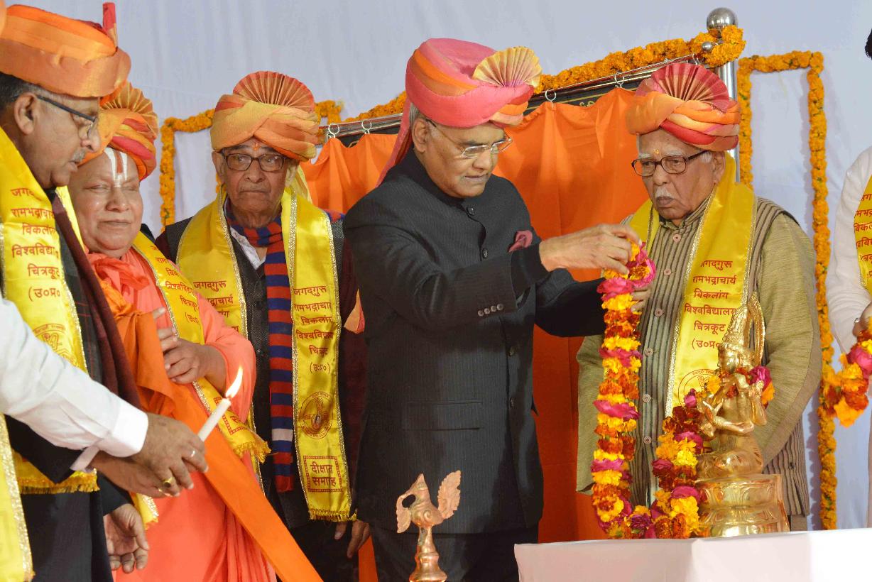 | Caption: | The President of India, Shri Ram Nath Kovind gracing at the 7th convocation of Jagadguru Rambhadracharya Handicapped University, at Chirakoot, in Uttar Pradesh on January 08, 2018. |