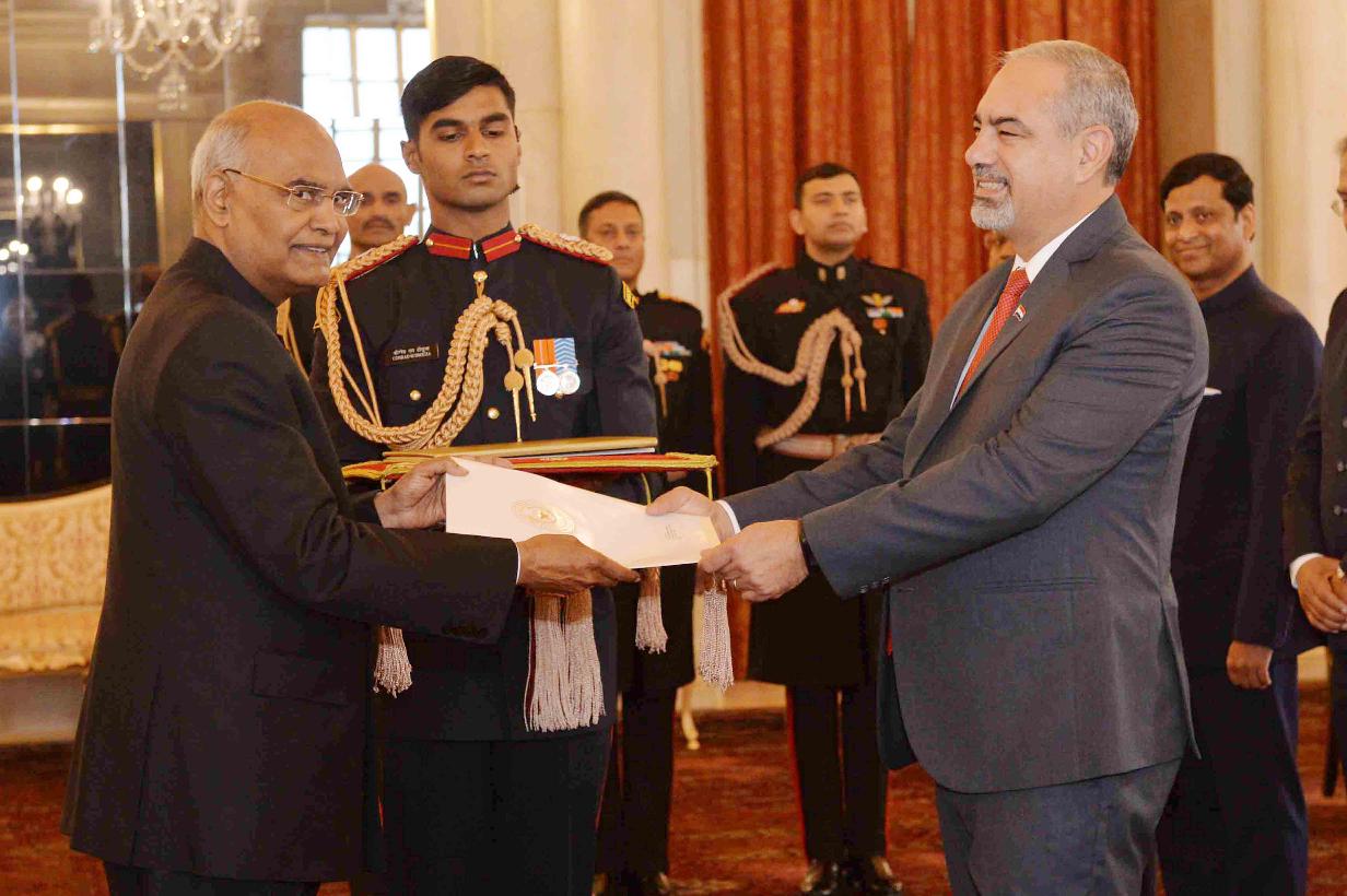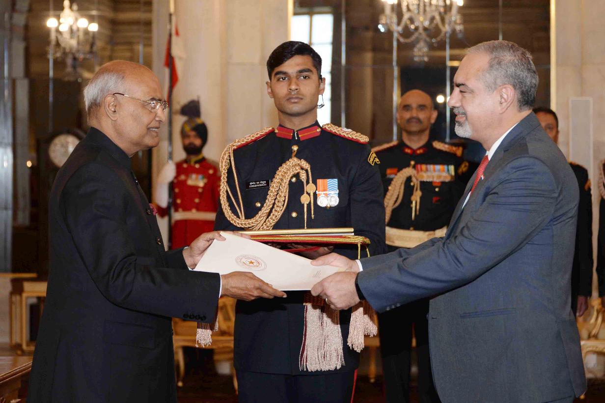 | Caption: | The Ambassador-designate of Paraguay, H.E. Mr. Fleming Raul Duarte Ramos presenting his credentials to the President of India, Shri Ram Nath Kovind, at Rashtrapati Bhavan on February 20, 2018. |
