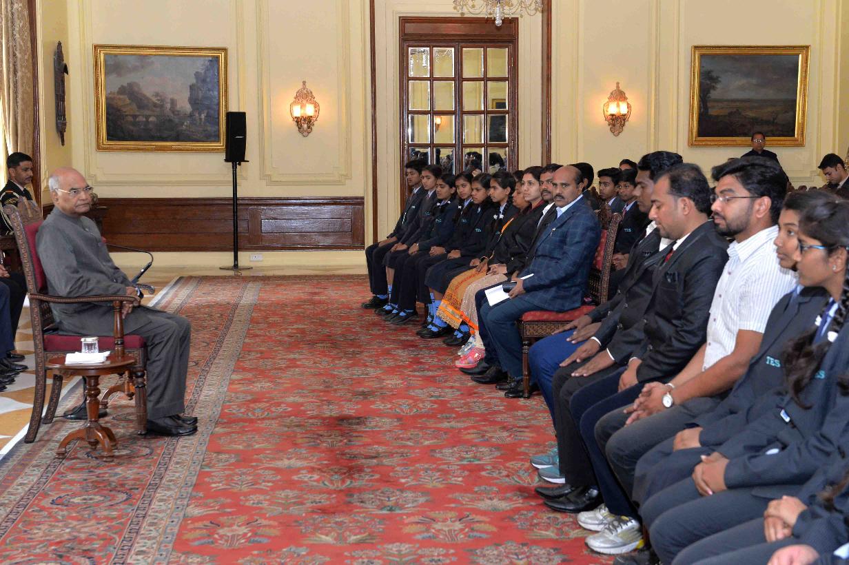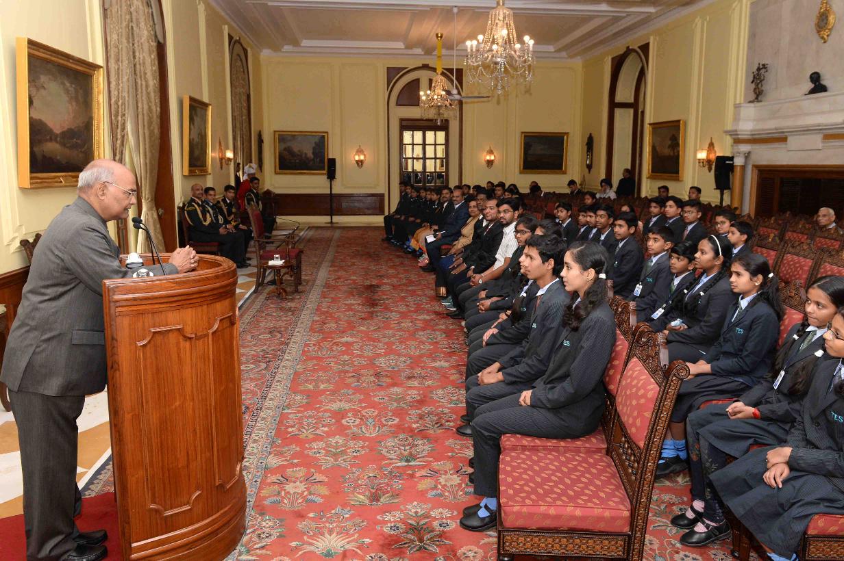 | Caption: | The President of India, Shri Ram Nath Kovind meeting with the students and teachers from Tapasya Public School, Wardha, Maharashtra, at Rashtrapati Bhavan on February 23, 2018. |