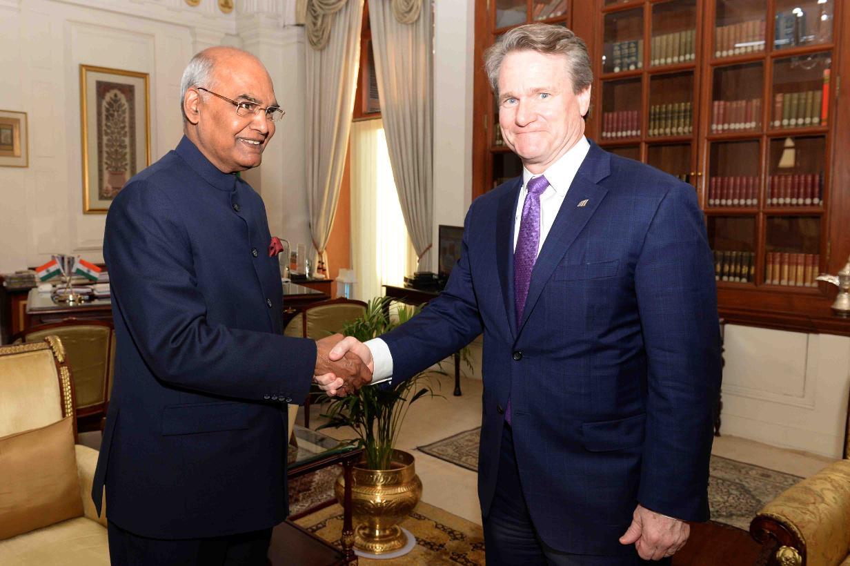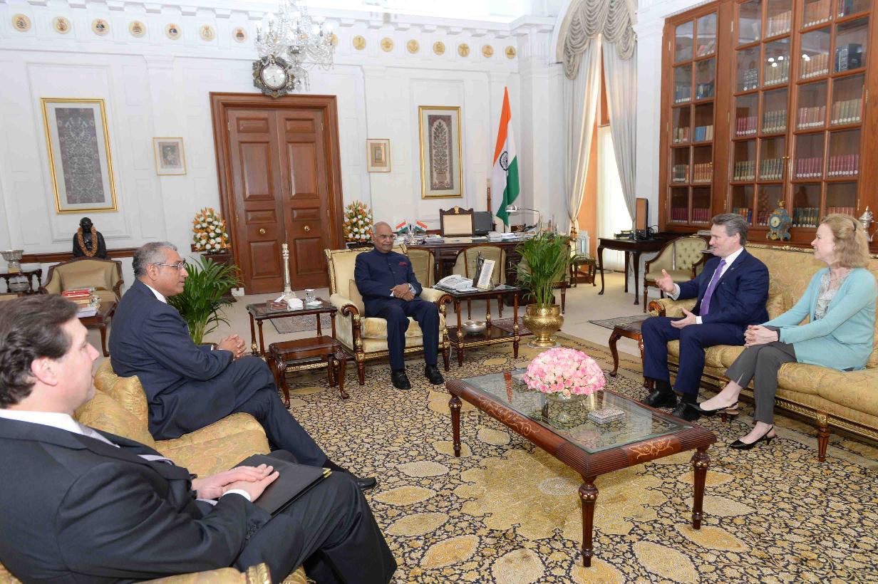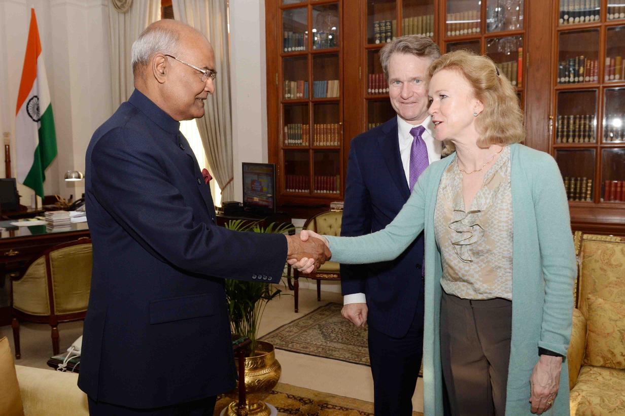 | Caption: | Mr. Brian Moynihan, Chairman & CEO, Bank of America alongwith his wife Mrs. Susan Berry, Shri Purna Saggurti, Global Chairman of Corporate & Investment Banking for Bank of America & Member, USISPF and Mr. Lawrence Di Rita, Senior Vice President, Bank of America meeting with the President of India, Shri Ram Nath Kovind, at Rashtrapati Bhavan on February 26, 2018. |