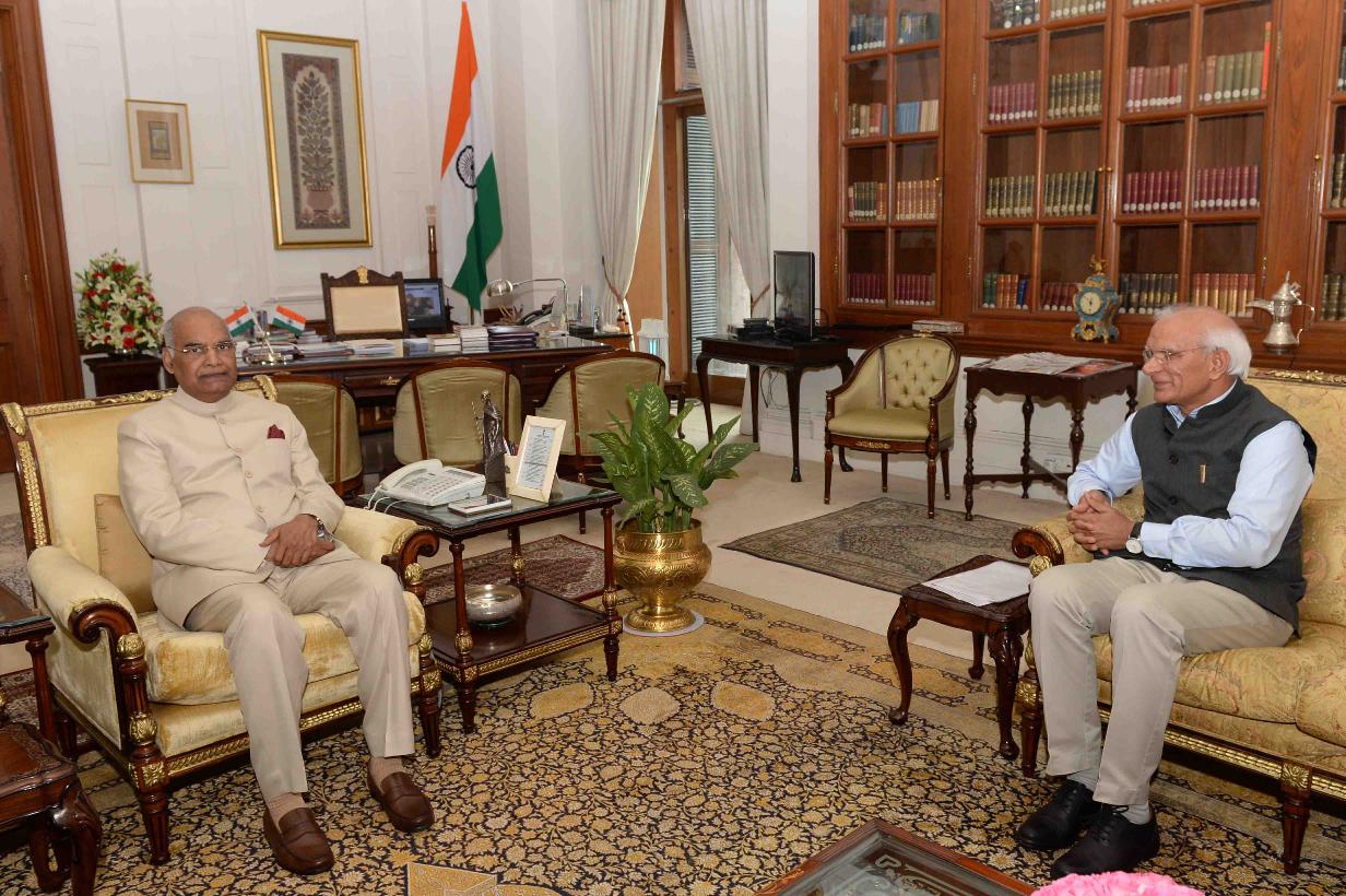 | Caption: | The former Chairman, University Grants Commission, Prof. Ved Prakash meeting with the President of India, Shri Ram Nath Kovind, at Rashtrapati Bhavan on March 01, 2018. |