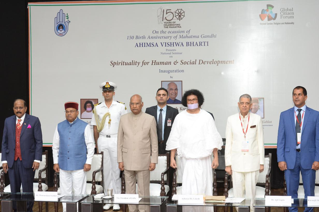 | Caption: | The President of India, Shri Ram Nath Kovind inaugurates a seminar "Spirituality for Human and Social Development" organised by Ahimsa Vishwa Bharti to mark the 150th birth anniversary of Mahatma Gandhi, in New Delhi on September 26, 2019. |