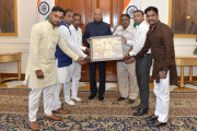 | Caption: | Shri Ravinder Chaudhary, Chairman, Master Duli Chand Foundation with others meeting with the President of India, Shri Ram Nath Kovind, at Rashtrapati Bhavan on October 09, 2019. |