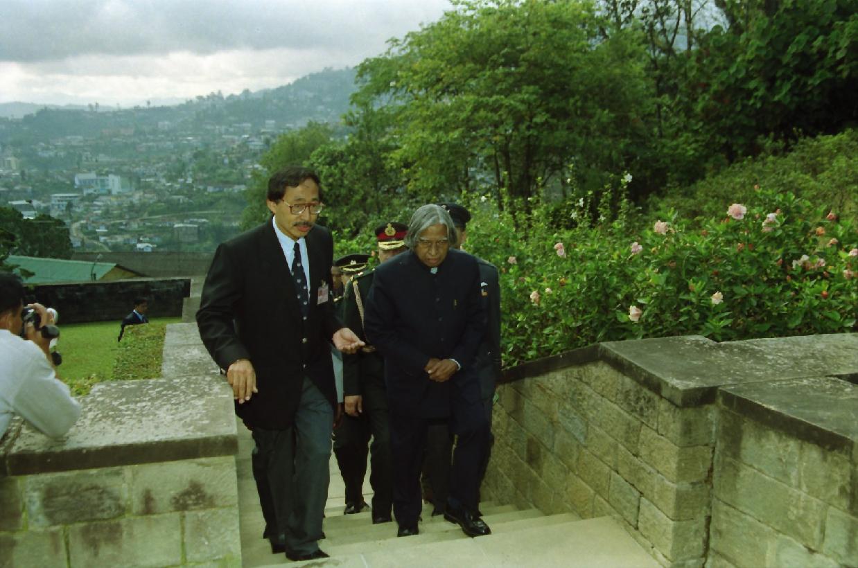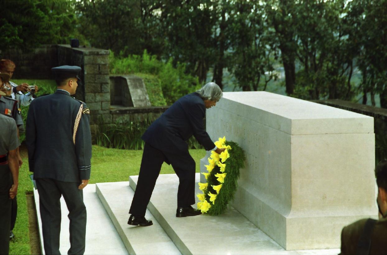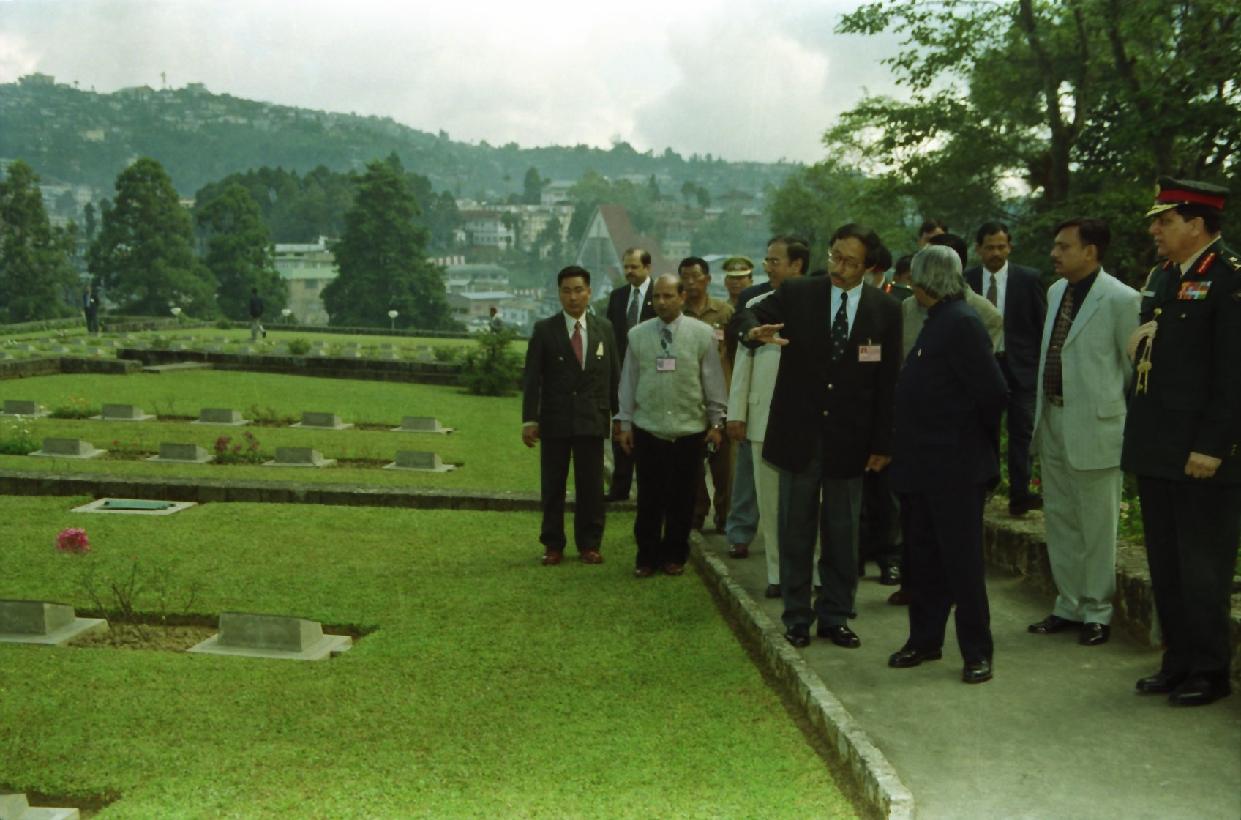 | Caption: | The President of India, Dr A P J Abdul Kalam visiting the Kohima War Cemetery at Kohima in Nagaland on Oct 26, 2002 |