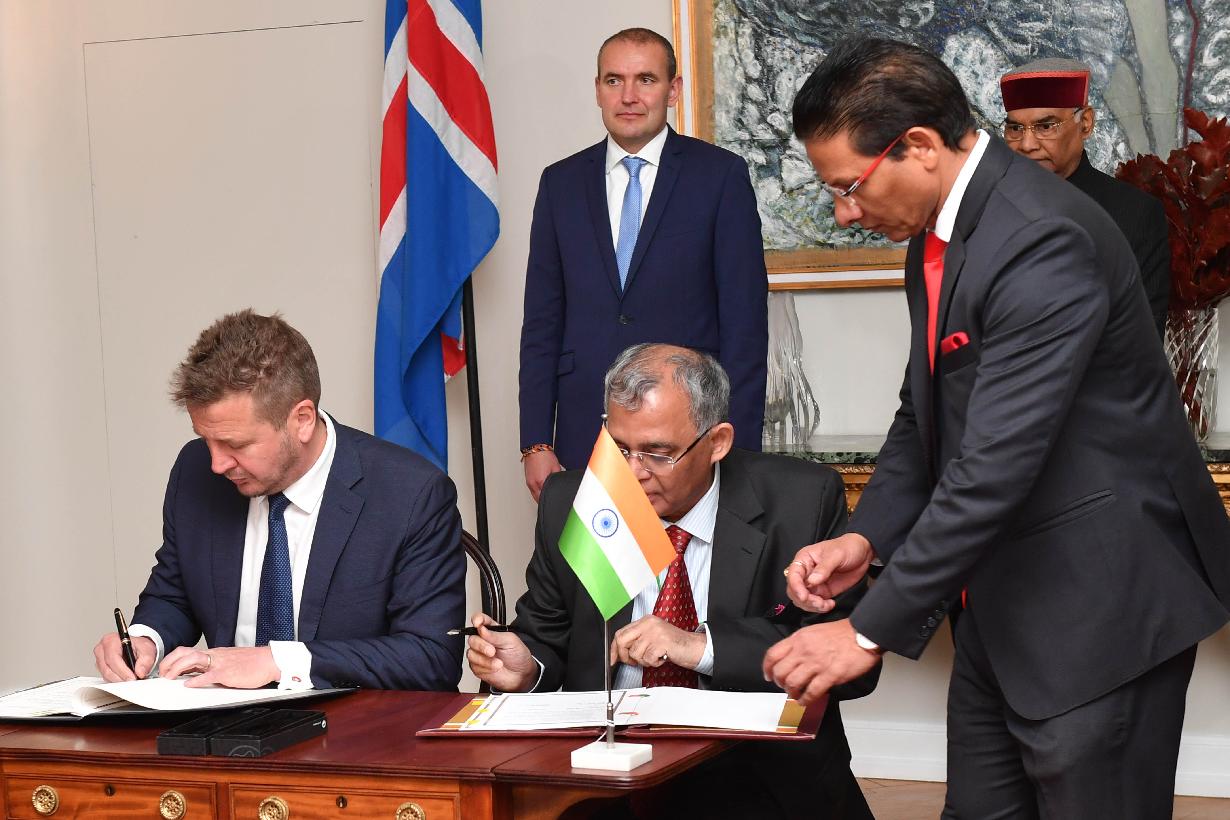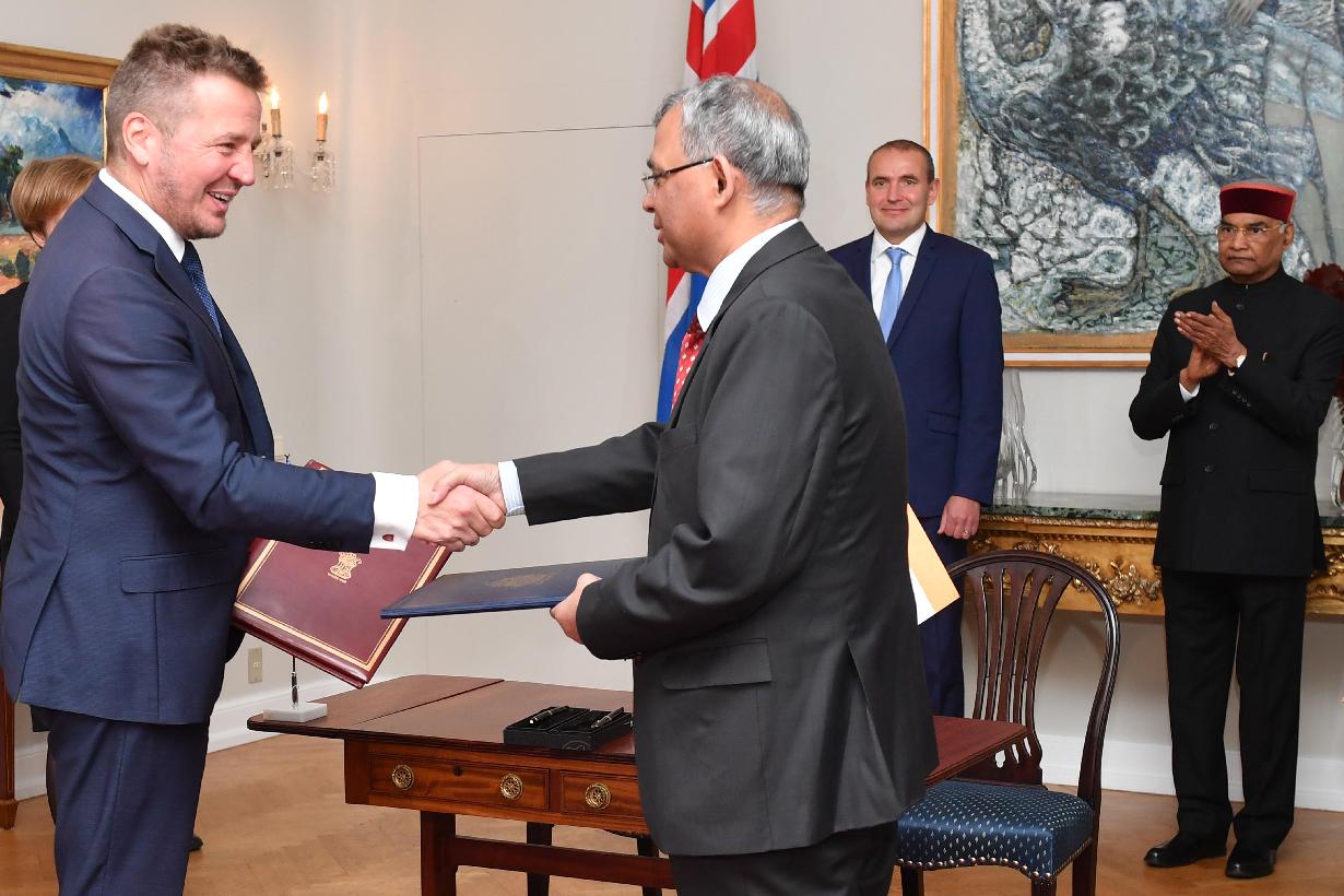 | Caption: | The President of India, Shri Ram Nath Kovind and the President of Iceland, Mr. Gudni Johannesson witnessing the signing of agreements between India and Iceland, at Presidential Residence, Reykjavik, in Iceland on September 10, 2019. |
