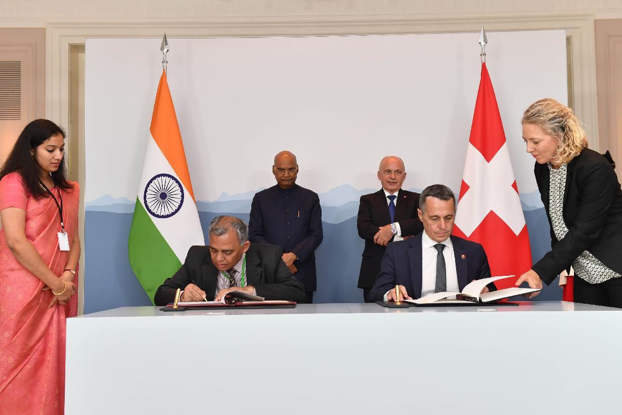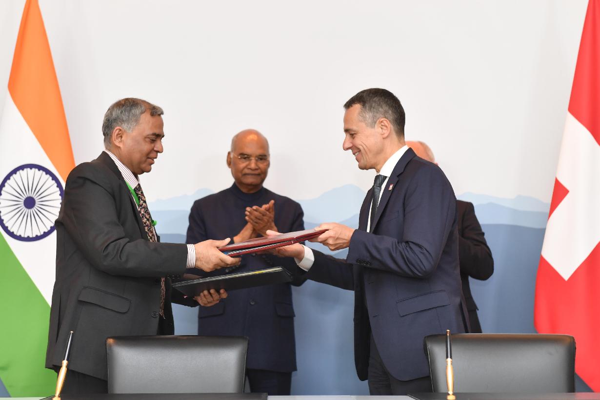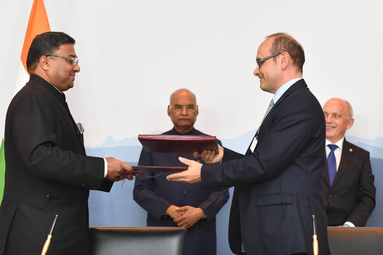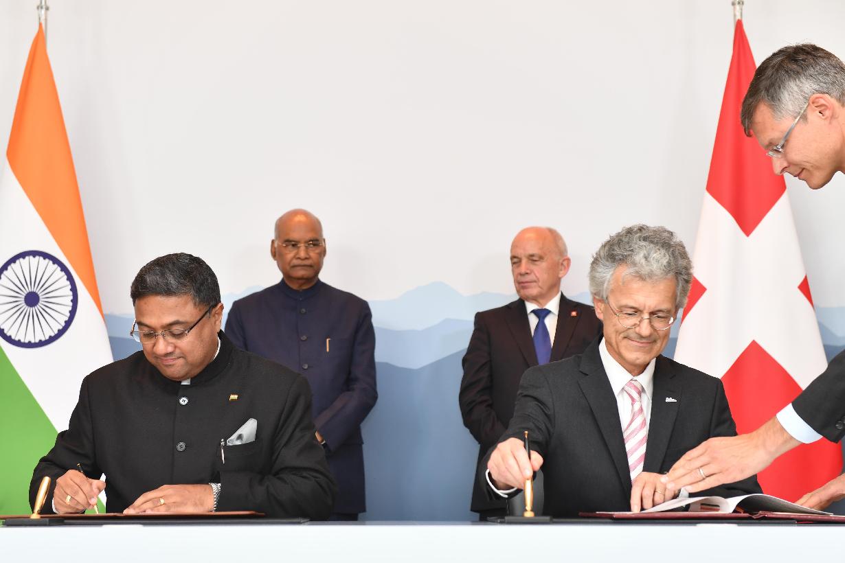 | Caption: | The President of India, Shri Ram Nath Kovind and the President of Switzerland, H.E. Mr. Ueli Maurer witnessing the signing of agreements between India and Switzerland, at Bern, in Switzerland on September 13, 2019. |