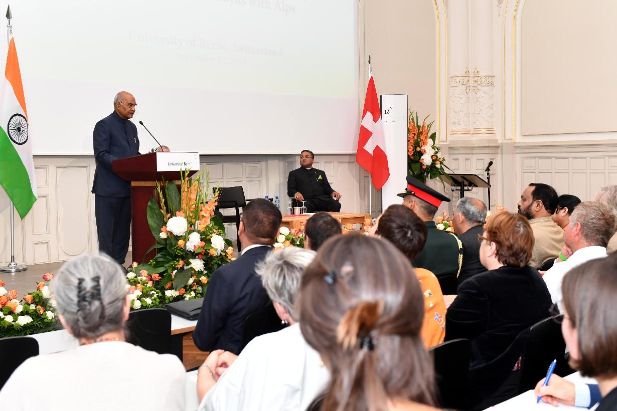 | Caption: | The President of India, Shri Ram Nath Kovind delivering a special lecture at the University of Berne on the topic "India Switzerland new age partnership: connecting Alps with Himalayas", at Bern, in Switzerland on September 12, 2019. |