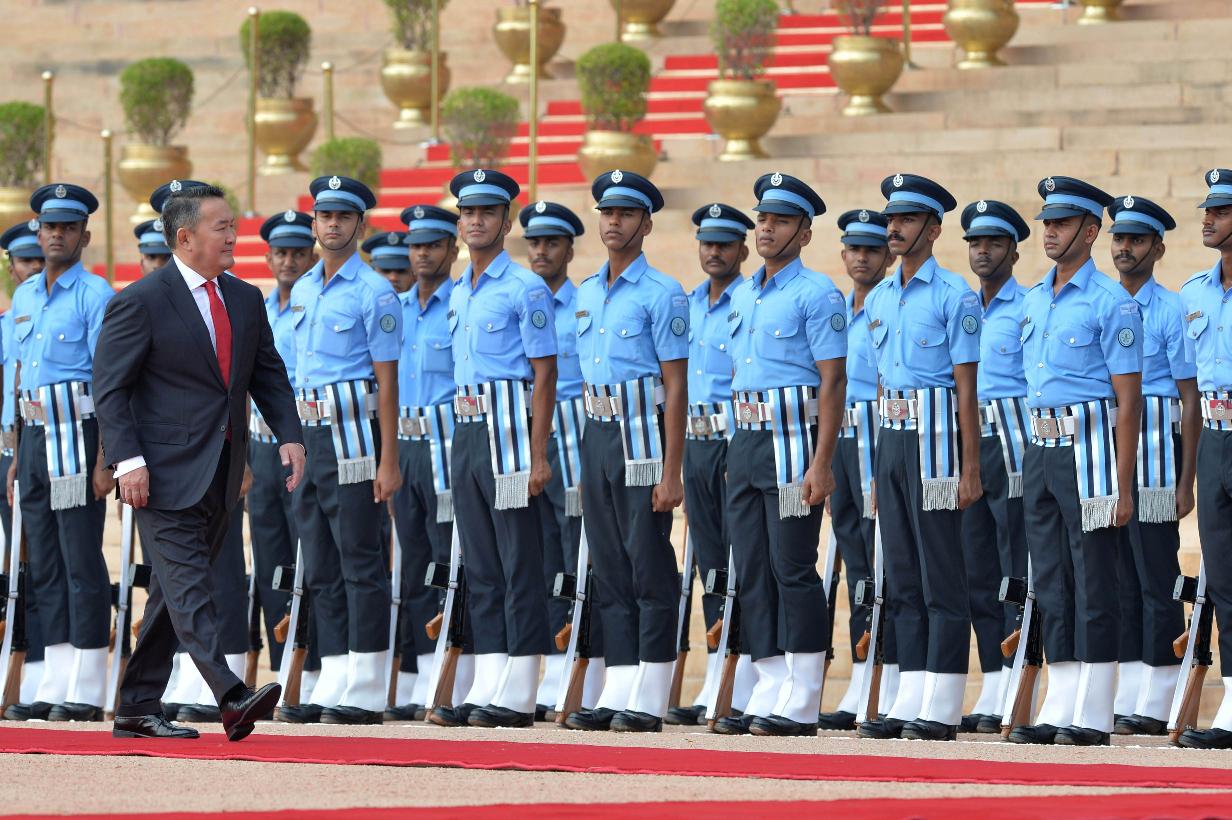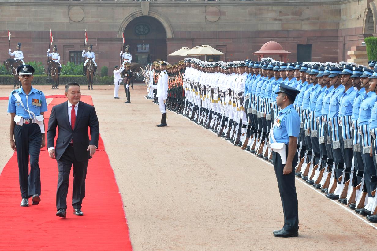 | Caption: | The President of India, Shri Ram Nath Kovind accords a ceremonial welcome to the President of Mongolia, H.E. Mr. Khaltmaagiin Battulga, at Rashtrapati Bhavan on September 20, 2019. |