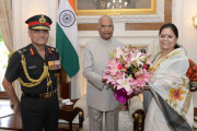 | Caption: | Lt. Gen. Ashwani Kumar along with his wife Smt. Vandana Sharma meeting with the President of India, Shri Ram Nath Kovind, at Rashtrapati Bhavan on October 07, 2019. |