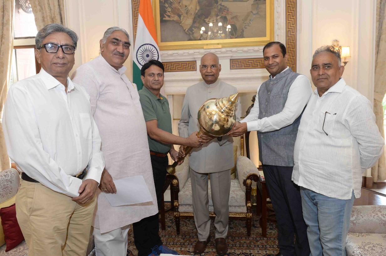 | Caption: | Shri Rajesh Gahlaot, Chairman and others from Dwarka Sri Ramlila Society, New Delhi meeting with the President of India, Shri Ram Nath Kovind, at Rashtrapati Bhavan on October 07, 2019. |