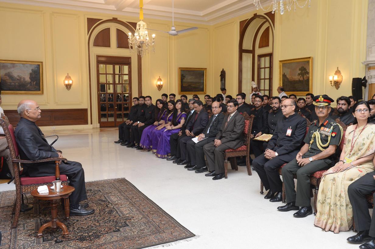 | Caption: | Officer-trainees of the Military Engineer Service meeting with the President of India, Shri Ram Nath Kovind, at Rashtrapati Bhavan on October 15, 2019. |