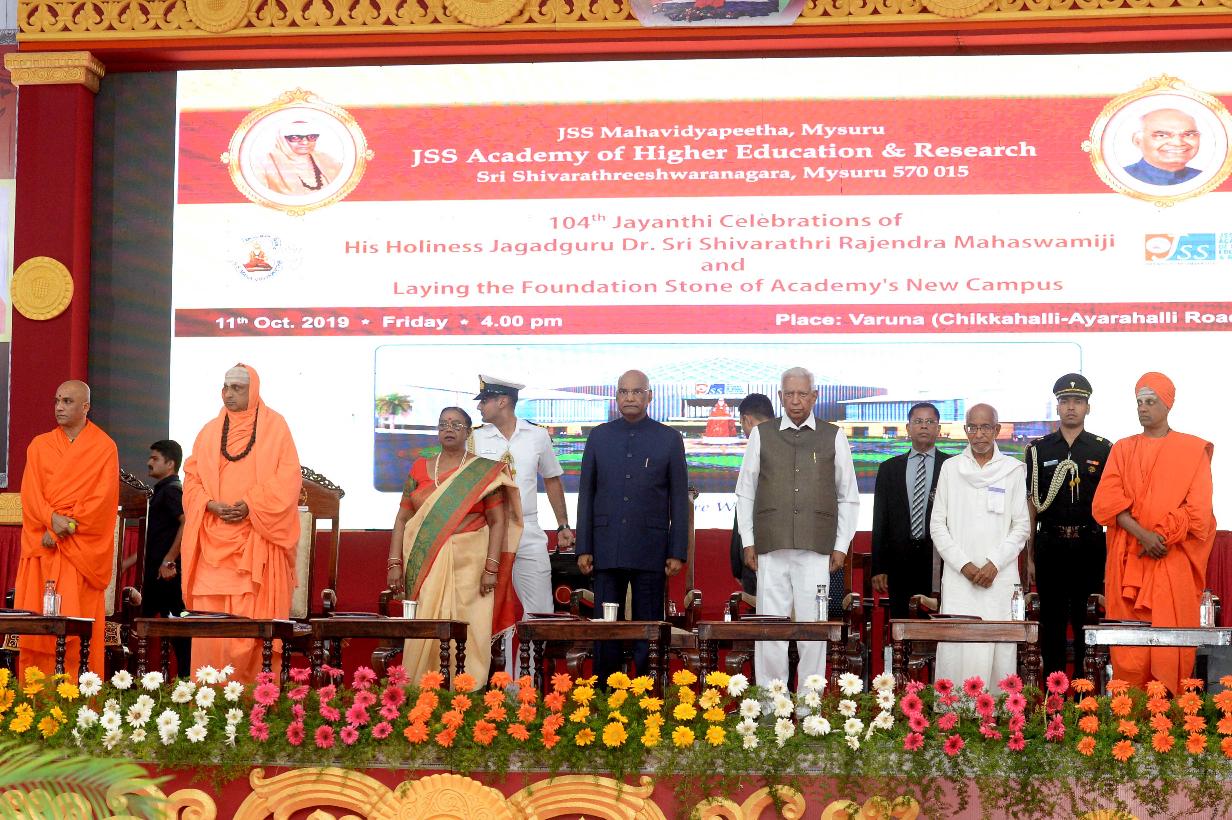 | Caption: | The President of India, Shri Ram Nath Kovind laying the Foundation Stone of the Campus of JSS Academy of Higher Education & Research, in Mysuru, Karnataka on October 11, 2019. |