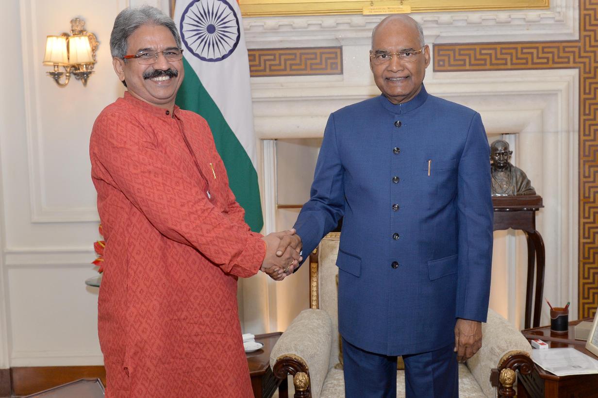 | Caption: | Prof. Sanjeev Kumar Sharma, Vice-Chancellor, Mahatma Gandhi Central University, Motihari meeting with the President of India, Shri Ram Nath Kovind, at Rashtrapati Bhavan on October 14, 2019. |