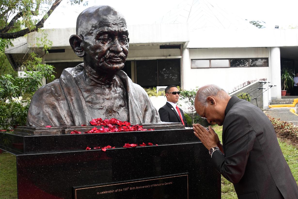 | Caption: | The President of India, Shri Ram Nath Kovind unveiling the bust of Mahatma Gandhi, in Manila, Philippines on October 20, 2019. |