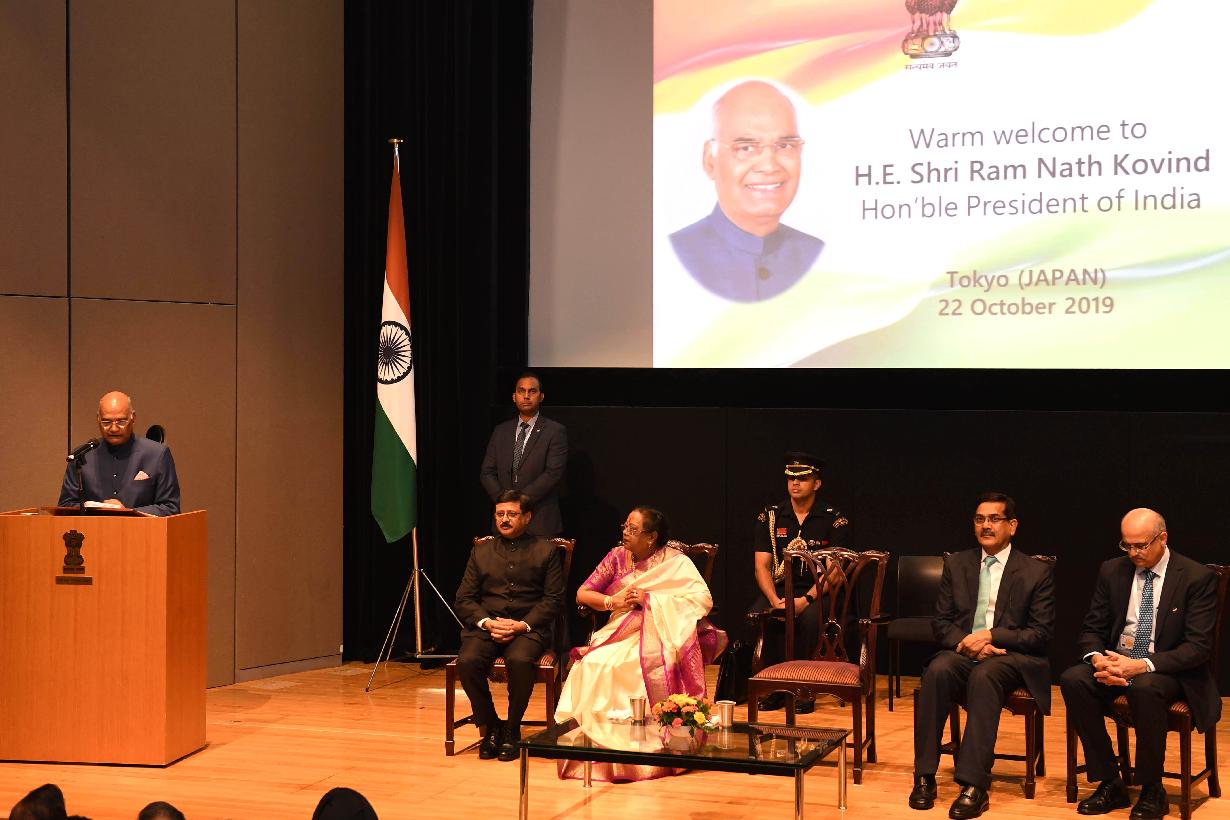 | Caption: | The President of India, Shri Ram Nath Kovind addressing the Indian community, in Tokyo, Japan on October 22, 2019. |