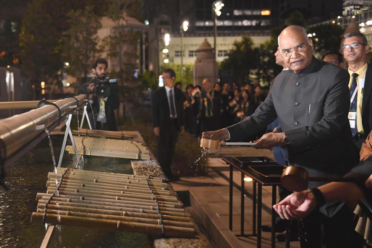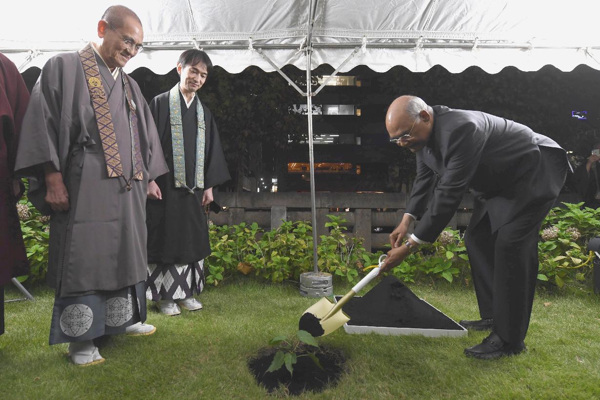 | Caption: | The President of India, Shri Ram Nath Kovind planting a sapling of Maha Bodhi Tree and paying his respects at Tsukiji Hongwanji Buddhist Temple, in Tokyo, Japan on October 21, 2019. |